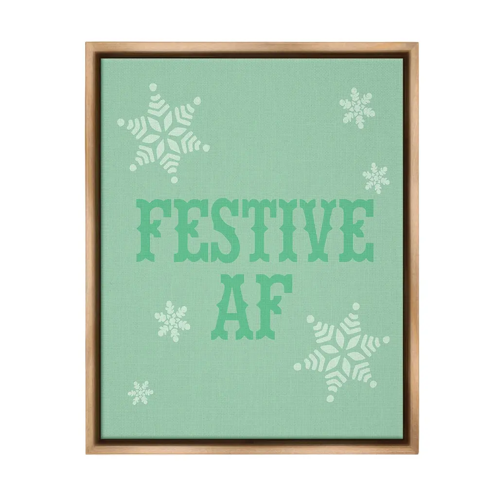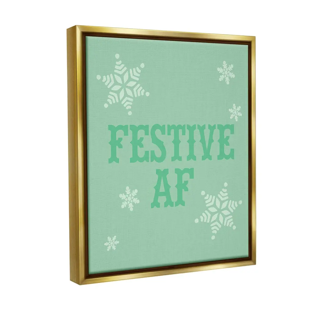 Stupell Funny Festive Af Phrase Framed Floater Canvas Wall Art Design By Lil' Rue - 17 X 21 - Gold