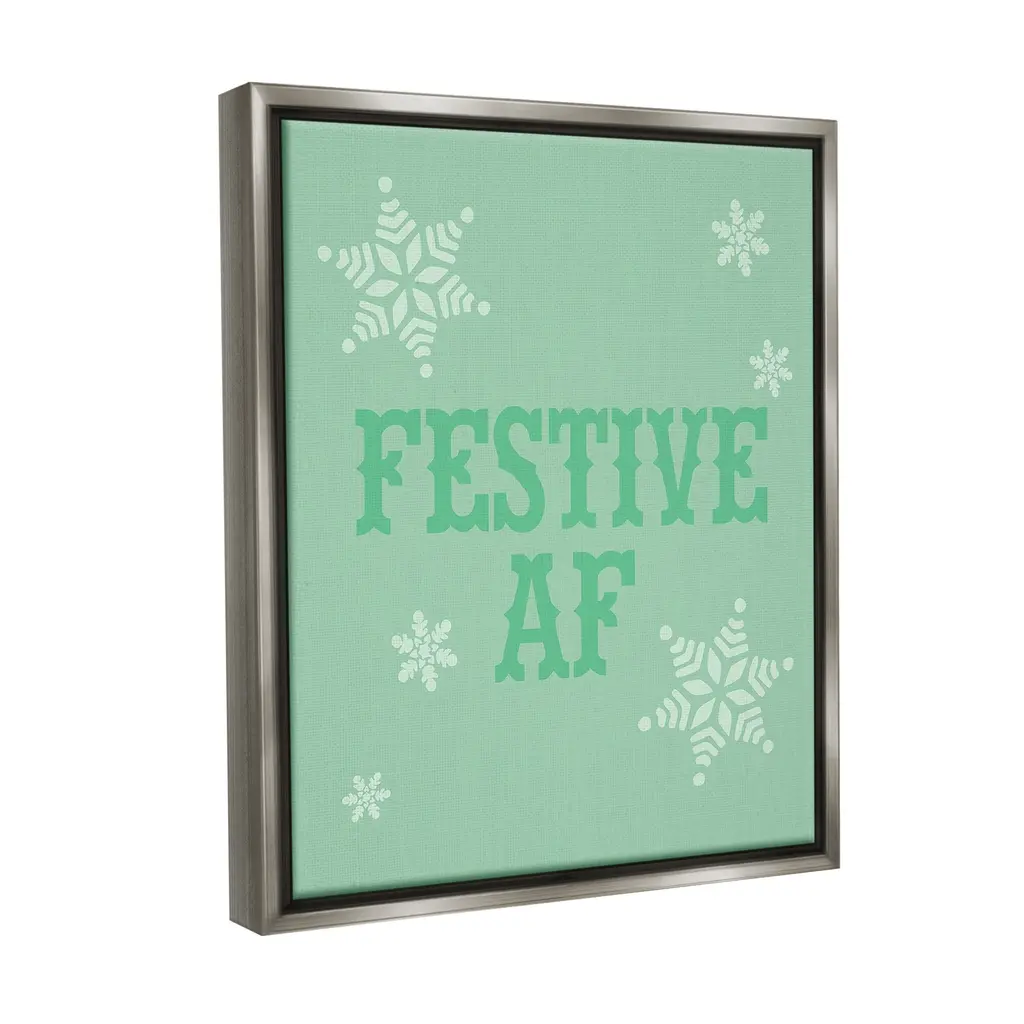 Elevate your home or office to the next level with Stupell Framed Floating Canvas Wall Art. Our premium hand-stretched canvas is mounted securely into a sturdy lightweight frame. The museum-style gap between the wrapped canvas and the box frame gives the illusion of floating artwork. Stupell Wall Art is made in the USA.Features: Dimensions: 17 x 1.7 x 21 Frame, 16 x 1.5 x 20 Canvas ArtFloating Frame Canvas Products are available in sizes 17"x21" and 25"x31". All Floating Frame Canvas Products have a 1.7" Depth.Wall Art is Ready to Hang with Hardware Free Hanging. No Installation required. For Easy Set Up Lean or Layer Artwork on Shelf or Against Wall. Artwork is Permently Fixed into the Frame.Our elevated 1.7" Thick Floating Frame is the perfect complement to our canvas style Wall Art. We use only the highest quality inks in house with industry leading printing solutions. Canvas is hand stretched over a durable wood foundation and then mounted securly into a Modern Box Frame. Made in the USA.Artwork Relates To: Seasonal, Holiday, Winter, Christmas, Phrase, Minimal, Humor, Snowflake, Festive AFDesign by Lil' Rue