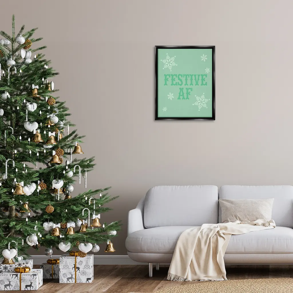 Stupell Funny Festive Af Phrase Framed Floater Canvas Wall Art Design By Lil' Rue - 25 X 31 - Black