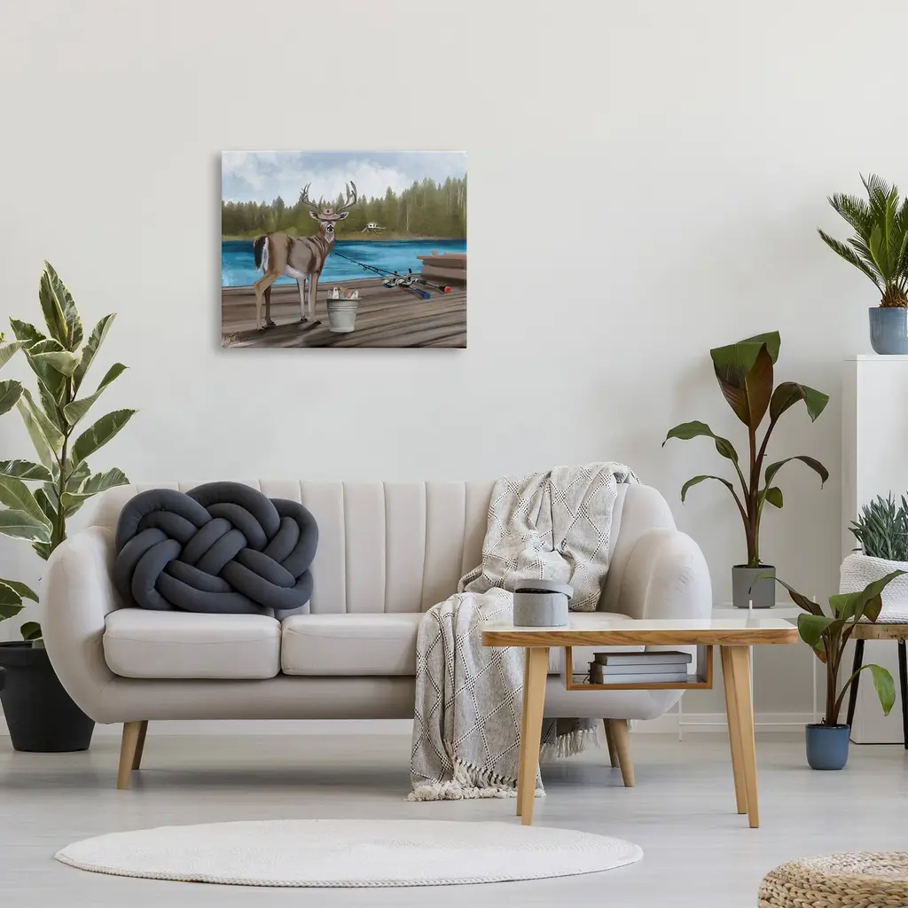 Proudly made in the USA, Our stretched canvas is created with the highest standards. We use only the highest quality inks and canvas on our in house Mimaki printers, and then hand cut and stretch each piece over a 1.5 inch thick wooden frame for hanging. The art comes ready to hang with no installation required. Room Type: Living Room, Den, Hallway, Office, Entryway, Study, Dining Room or Bedroom, Guest Room, Studio, Dorm or BoudoirFeatures: Dimensions: 20 x 1.5 x 16 InchesStretched Canvas Sizes Include Standard: 20 x 1.5 x 16 Large: 30 x 1.5 x 20 X-Large: 40 x 1.5 x 30 Oversized: 48 x 1.5 x 36Wall Art is Ready to Hang - No Installation or Hardware Needed. For Easy Set Up Lean or Layer Artwork on Shelf or Against Wall.Our stretched canvas is created with the highest standards. We use only the highest quality inks and canvas on our in house Mimaki printers, and then hand cut and stretch each piece over a 1.5 inch thick wooden frame for hanging. Made In USA.Artwork Relates To: Fishing, Leisure Activities, Water, Animal, Deer, Mammal, Wildlife, AnglerDesign by Elizabeth Medley