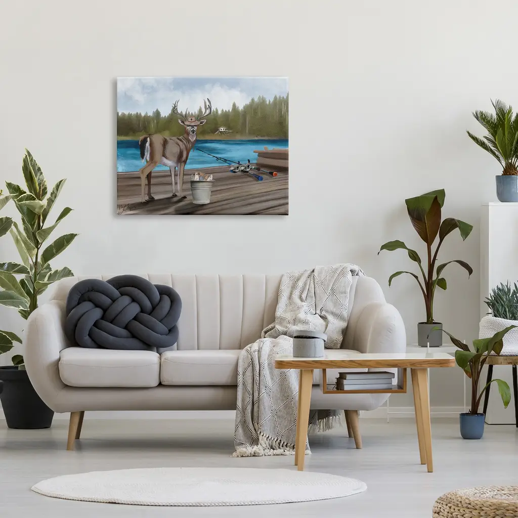 Proudly made in the USA, Our stretched canvas is created with the highest standards. We use only the highest quality inks and canvas on our in house Mimaki printers, and then hand cut and stretch each piece over a 1.5 inch thick wooden frame for hanging. The art comes ready to hang with no installation required. Room Type: Living Room, Den, Hallway, Office, Entryway, Study, Dining Room or Bedroom, Guest Room, Studio, Dorm or BoudoirFeatures: Dimensions: 20 x 1.5 x 16 InchesStretched Canvas Sizes Include Standard: 20 x 1.5 x 16 Large: 30 x 1.5 x 20 X-Large: 40 x 1.5 x 30 Oversized: 48 x 1.5 x 36Wall Art is Ready to Hang - No Installation or Hardware Needed. For Easy Set Up Lean or Layer Artwork on Shelf or Against Wall.Our stretched canvas is created with the highest standards. We use only the highest quality inks and canvas on our in house Mimaki printers, and then hand cut and stretch each piece over a 1.5 inch thick wooden frame for hanging. Made In USA.Artwork Relates To: Fishing, Leisure Activities, Water, Animal, Deer, Mammal, Wildlife, AnglerDesign by Elizabeth Medley