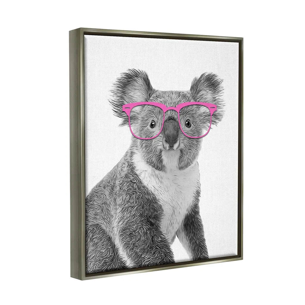 Elevate your home or office to the next level with Stupell Framed Floating Canvas Wall Art. Our premium hand-stretched canvas is mounted securely into a sturdy lightweight frame. The museum-style gap between the wrapped canvas and the box frame gives the illusion of floating artwork. Stupell Wall Art is made in the USA.Features: Dimensions: 17 x 1.7 x 21 Frame, 16 x 1.5 x 20 Canvas ArtFloating Frame Sizes Include Standard: 17 x 1.7 x 21 Oversized: 25 x 1.7 x 31Wall Art is Ready to Hang - No Installation or Hardware Needed. For Easy Set Up Lean or Layer Artwork on Shelf or Against Wall.Our elevated 1.7" Thick Floating Frame is the perfect complement to our canvas style Wall Art. We use only the highest quality inks in house with industry leading printing solutions. Canvas is hand stretched over a durable wood foundation and then mounted securly into a Modern Box Frame. Made in the USA.Artwork Relates To: Glasses, Animal, Mammal, Wildlife, KoalaDesign by Annalisa Latella