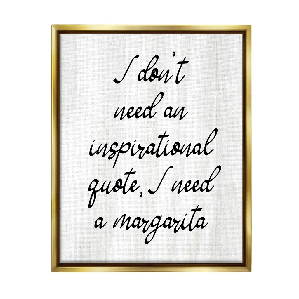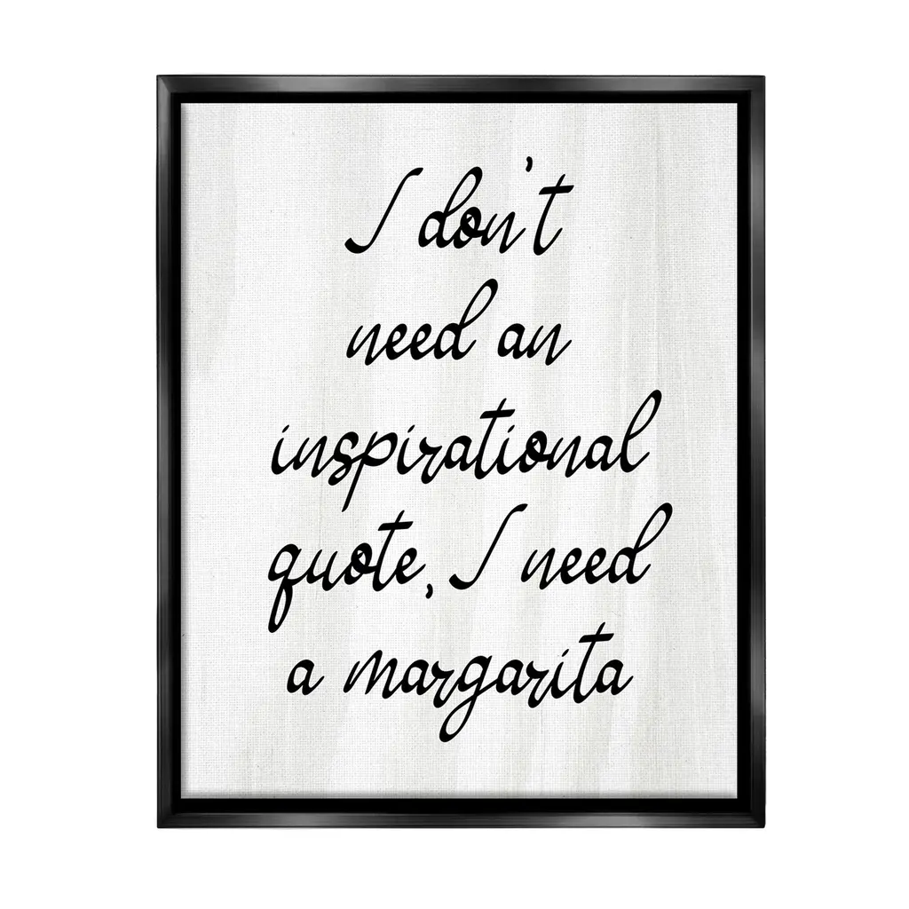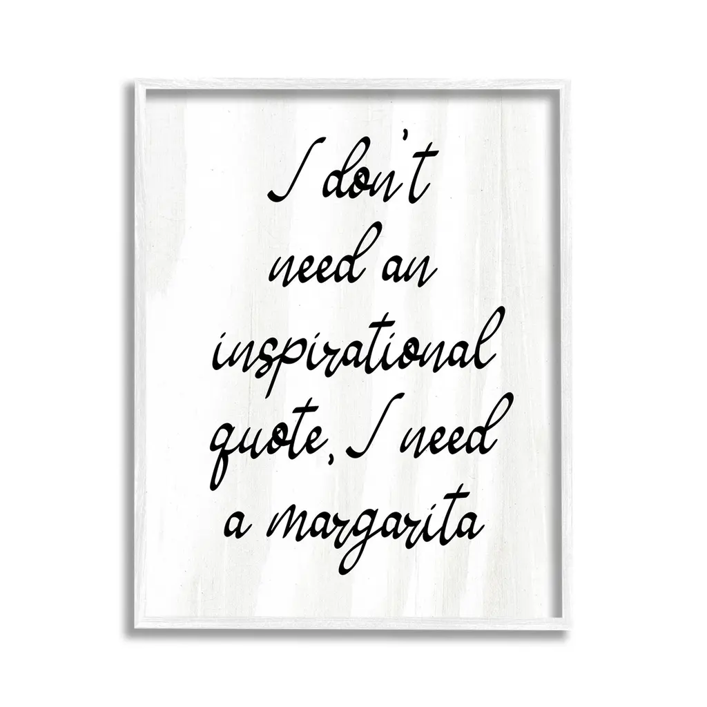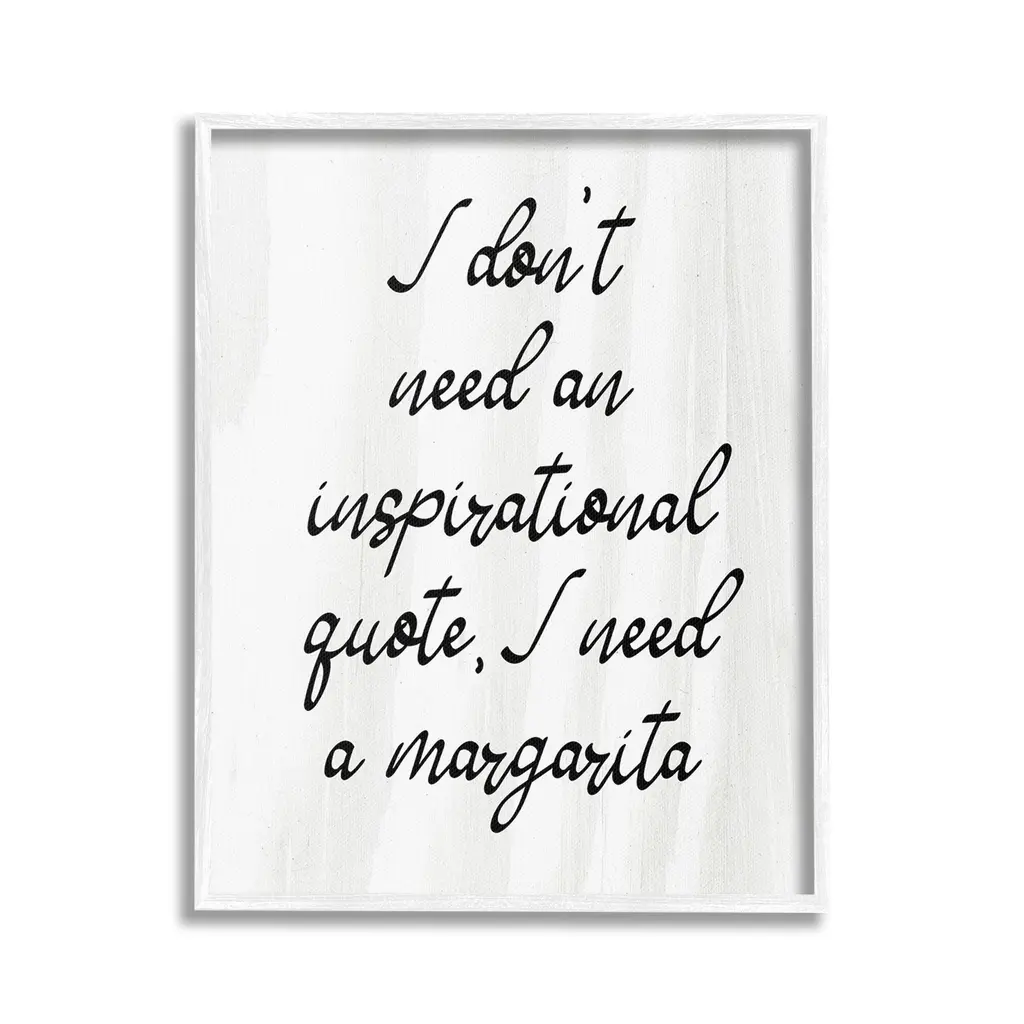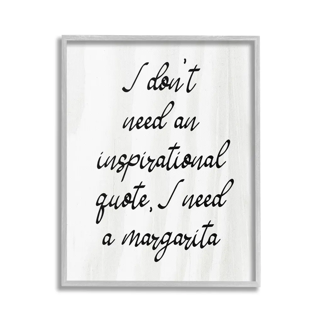 Add dimension to any room with our textured Framed Giclee Artwork. Our framed artwork is securely mounted into a 1.5-inch thick wood grain frame and ready to hang. Frames are available in three alluring styles: black, gray farmhouse and white. In addition, you should check out our oversized options if you want a statement piece. Stupell Wall Art is made in the USA.Features: Dimensions: 11 x 1.5 x 14 FramedFramed Giclee Products are available in the sizes 11"x14", 16"x20" or 24"x30". All Framed Giclee Products have a 1.5" Depth. Wall Art is Ready to Hang with Hardware Free Hanging. No installation required. For Easy Set Up Lean or Layer Artwork on Shelf or Against Wall.Our giclée prints are carefully mounted on a durable MDF backing, and then perfectly finished in a 1.5 inch thick woodgrain frame. Mounted frame colors include black, gray farmhouse and white. Made In USA.Artwork Relates To: Humor, Kitchen, Bar, Cocktail, Margarita, Sassy, I don't need an Inspirational Quote I Need a MargaritaDesign by Lil' Rue