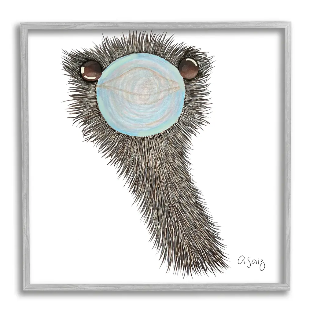 Add dimension to any room with our textured Framed Giclee Artwork. Our framed artwork is securely mounted into a 1.5-inch thick wood grain frame and ready to hang. Frames are available in three alluring styles: black, gray farmhouse and white. In addition, you should check out our oversized options if you want a statement piece. Stupell Wall Art is made in the USA.Features: Dimensions: 12 x 1.5 x 12 FramedFramed Giclee Sizes Include Standard: 12 x 1.5 x 12 Large: 17 x 1.5 x 17 Oversized: 24 x 1.5 x 24Wall Art is Ready to Hang - No Installation or Hardware Needed. For Easy Set Up Lean or Layer Artwork on Shelf or Against Wall.Our giclée prints are carefully mounted on a durable MDF backing, and then perfectly finished in a 1.5 inch thick woodgrain frame. Mounted frame colors include black, gray farmhouse and white. Made In USA.Artwork Relates To: Animal, Bird, Mammal, Ostrich, Bubblegum, FunnyDesign by Ale Saiz Studio