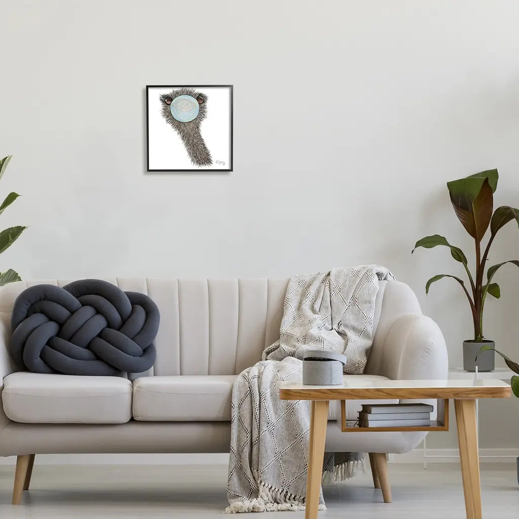 Add dimension to any room with our textured Framed Giclee Artwork. Our framed artwork is securely mounted into a 1.5-inch thick wood grain frame and ready to hang. Frames are available in three alluring styles: black, gray farmhouse and white. In addition, you should check out our oversized options if you want a statement piece. Stupell Wall Art is made in the USA.Features: Dimensions: 12 x 1.5 x 12 FramedFramed Giclee Sizes Include Standard: 12 x 1.5 x 12 Large: 17 x 1.5 x 17 Oversized: 24 x 1.5 x 24Wall Art is Ready to Hang - No Installation or Hardware Needed. For Easy Set Up Lean or Layer Artwork on Shelf or Against Wall.Our giclée prints are carefully mounted on a durable MDF backing, and then perfectly finished in a 1.5 inch thick woodgrain frame. Mounted frame colors include black, gray farmhouse and white. Made In USA.Artwork Relates To: Animal, Bird, Mammal, Ostrich, Bubblegum, FunnyDesign by Ale Saiz Studio