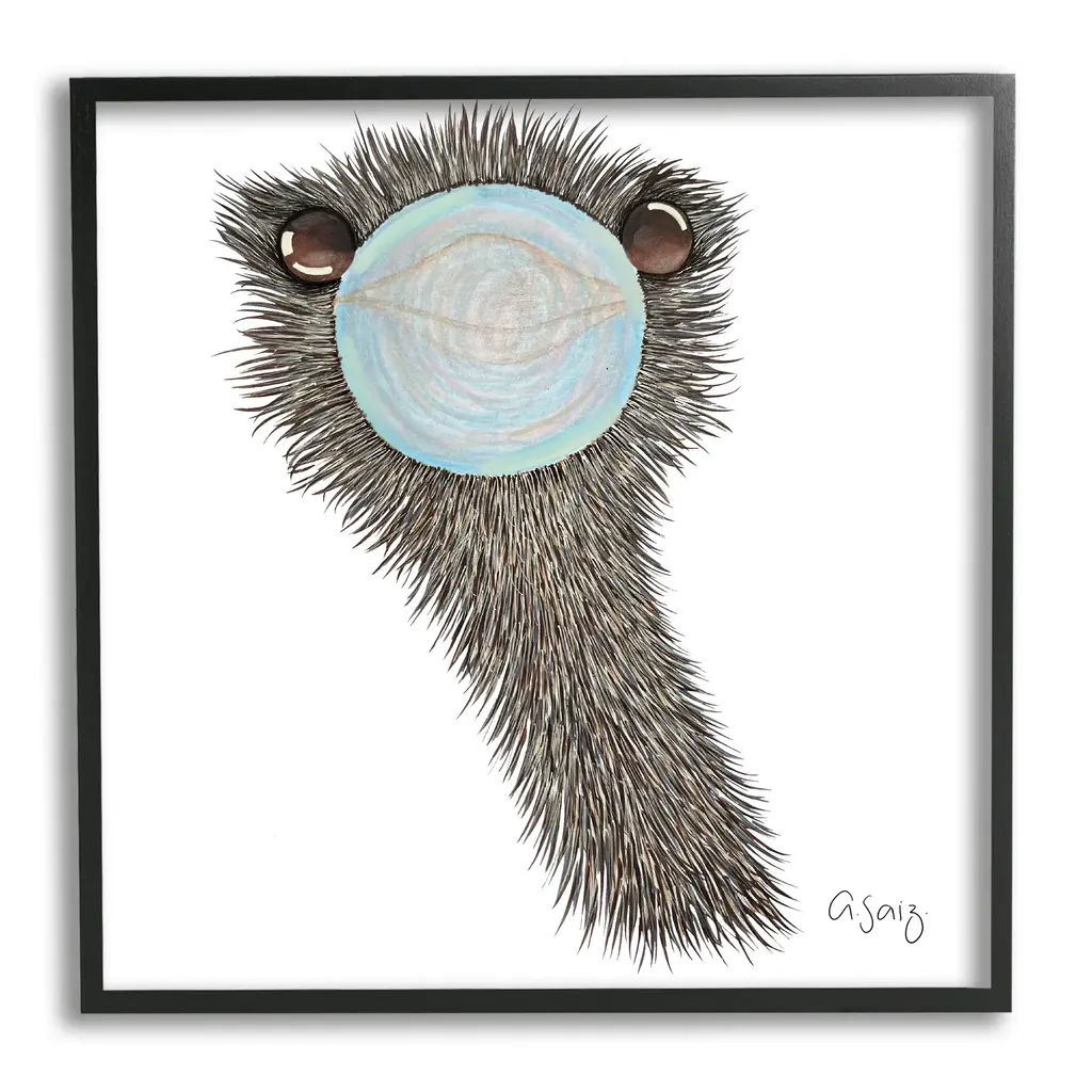 Add dimension to any room with our textured Framed Giclee Artwork. Our framed artwork is securely mounted into a 1.5-inch thick wood grain frame and ready to hang. Frames are available in three alluring styles: black, gray farmhouse and white. In addition, you should check out our oversized options if you want a statement piece. Stupell Wall Art is made in the USA.Features: Dimensions: 12 x 1.5 x 12 FramedFramed Giclee Sizes Include Standard: 12 x 1.5 x 12 Large: 17 x 1.5 x 17 Oversized: 24 x 1.5 x 24Wall Art is Ready to Hang - No Installation or Hardware Needed. For Easy Set Up Lean or Layer Artwork on Shelf or Against Wall.Our giclée prints are carefully mounted on a durable MDF backing, and then perfectly finished in a 1.5 inch thick woodgrain frame. Mounted frame colors include black, gray farmhouse and white. Made In USA.Artwork Relates To: Animal, Bird, Mammal, Ostrich, Bubblegum, FunnyDesign by Ale Saiz Studio