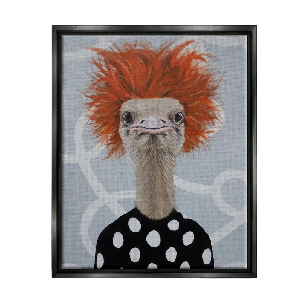 Elevate your home or office to the next level with Stupell Framed Floating Canvas Wall Art. Our premium hand-stretched canvas is mounted securely into a sturdy lightweight frame. The museum-style gap between the wrapped canvas and the box frame gives the illusion of floating artwork. Stupell Wall Art is made in the USA.Features: Dimensions: 17 x 1.7 x 21 Frame, 16 x 1.5 x 20 Canvas ArtFloating Frame Sizes Include Standard: 17 x 1.7 x 21 Oversized: 25 x 1.7 x 31Wall Art is Ready to Hang - No Installation or Hardware Needed. For Easy Set Up Lean or Layer Artwork on Shelf or Against Wall.Our elevated 1.7" Thick Floating Frame is the perfect complement to our canvas style Wall Art. We use only the highest quality inks in house with industry leading printing solutions. Canvas is hand stretched over a durable wood foundation and then mounted securly into a Modern Box Frame. Made in the USA.Artwork Relates To: Modern, Painting, Animal, Mammal, Bird, Ostrich, Glam, FashionDesign by Coco de Paris