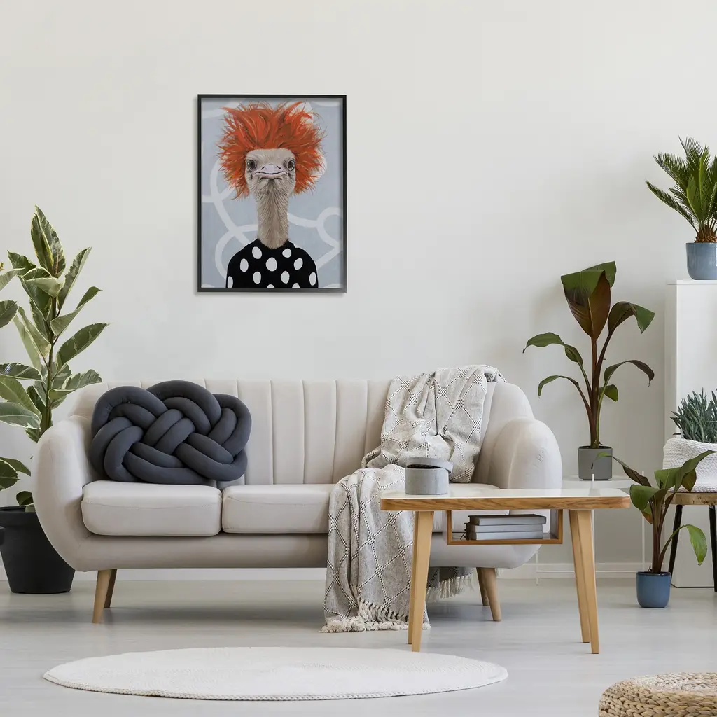 Add dimension to any room with our textured Framed Giclee Artwork. Our framed artwork is securely mounted into a 1.5-inch thick wood grain frame and ready to hang. Frames are available in three alluring styles: black, gray farmhouse and white. In addition, you should check out our oversized options if you want a statement piece. Stupell Wall Art is made in the USA.Features: Dimensions: 11 x 1.5 x 14 FramedFramed Giclee Sizes Include Standard: 11 x 1.5 x 14 Large: 16 x 1.5 x 20 Oversized: 24 x 1.5 x 30Wall Art is Ready to Hang - No Installation or Hardware Needed. For Easy Set Up Lean or Layer Artwork on Shelf or Against Wall.Our giclée prints are carefully mounted on a durable MDF backing, and then perfectly finished in a 1.5 inch thick woodgrain frame. Mounted frame colors include black, gray farmhouse and white. Made In USA.Artwork Relates To: Modern, Painting, Animal, Mammal, Bird, Ostrich, Glam, FashionDesign by Coco de Paris