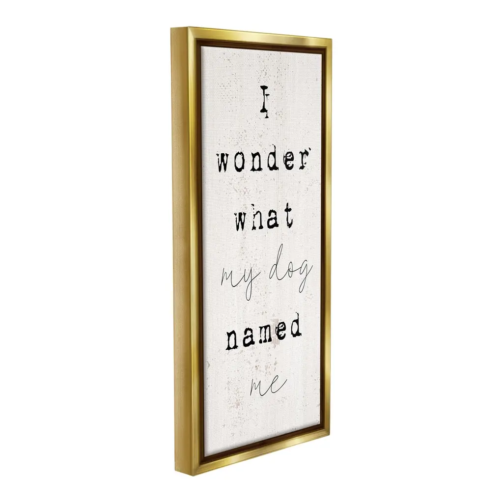 Elevate your home or office to the next level with Stupell Framed Floating Canvas Wall Art. Our premium hand-stretched canvas is mounted securely into a sturdy lightweight frame. The museum-style gap between the wrapped canvas and the box frame gives the illusion of floating artwork. Stupell Wall Art is made in the USA.Features: Dimensions: 11 x 1.7 x 25 Frame, 10 x 1.5 x 24 Canvas ArtFloating Frame Canvas Products are available in sizes 11"x25" and 14"x31". All Floating Frame Canvas Products have a 1.7" Depth.Wall Art is Ready to Hang with Hardware Free Hanging. No Installation required. For Easy Set Up Lean or Layer Artwork on Shelf or Against Wall. Artwork is Permently Fixed into the Frame.Our elevated 1.7" Thick Floating Frame is the perfect complement to our canvas style Wall Art. We use only the highest quality inks in house with industry leading printing solutions. Canvas is hand stretched over a durable wood foundation and then mounted securly into a Modern Box Frame. Made in the USA.Artwork Relates To: Phrase, Rustic, Pet, Dog, Humor, I Wonder What my Dog Named MeDesign by Lil' Rue