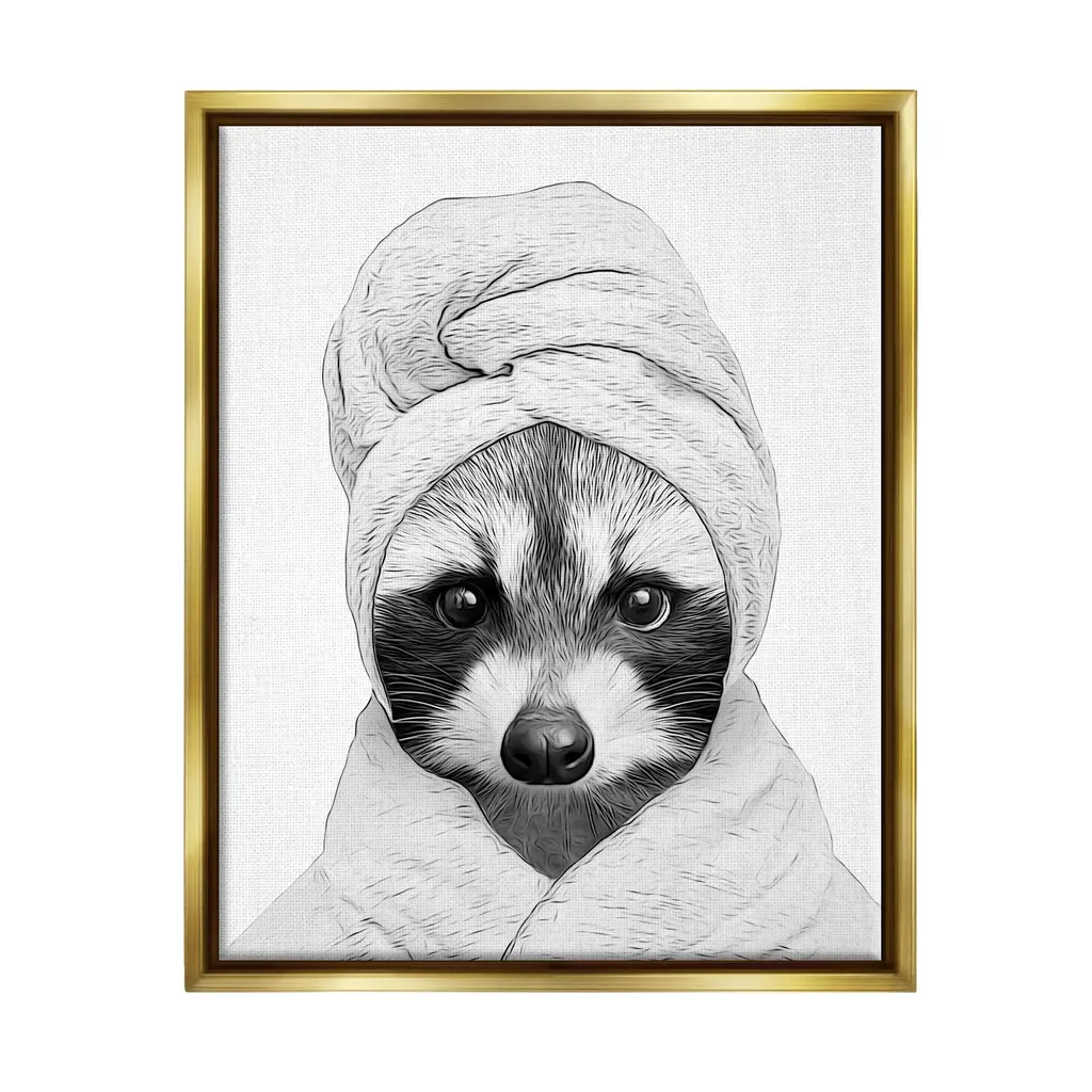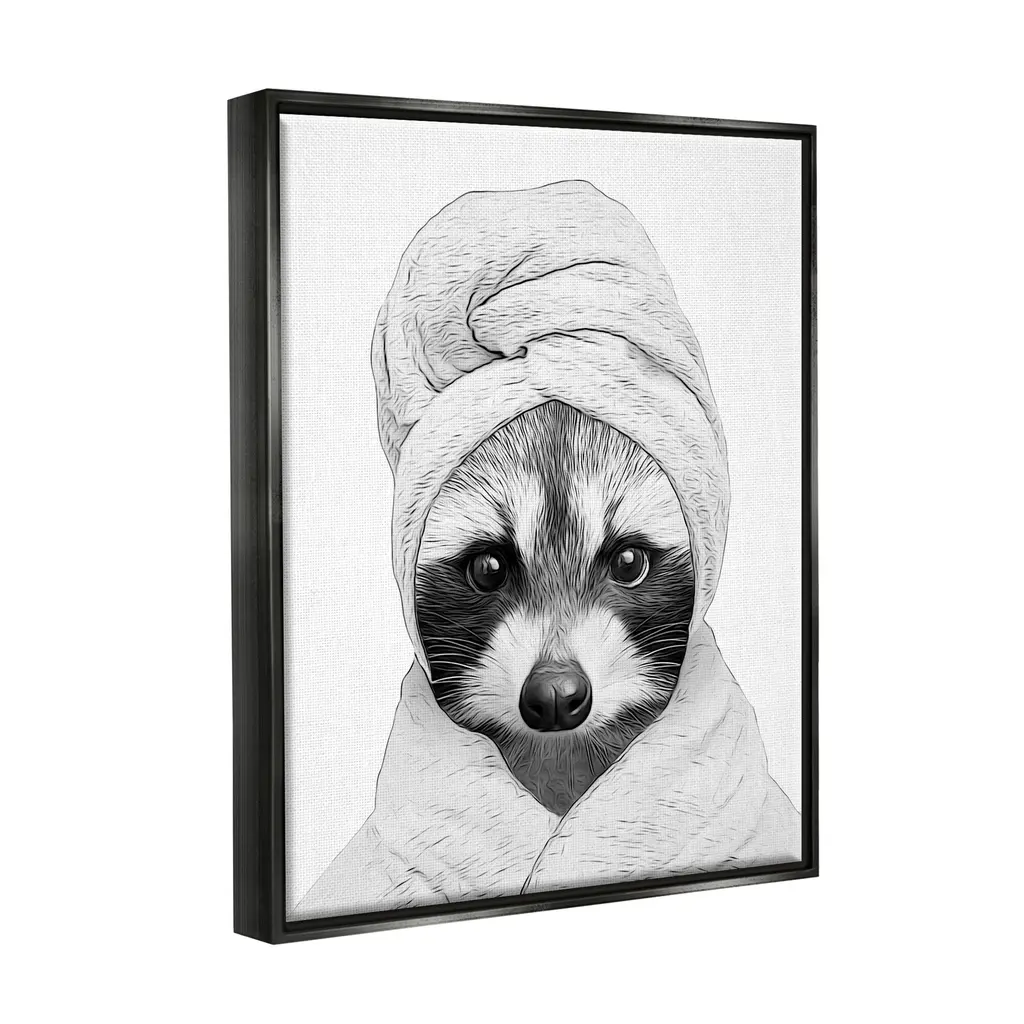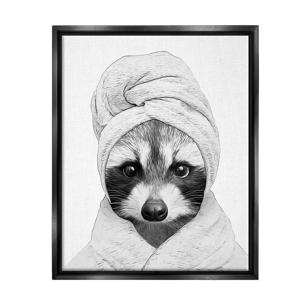 Stupell Funny Raccoon Bathrobe Towel Framed Floater Canvas Wall Art By Annalisa Latella - 16 X 20 - Black