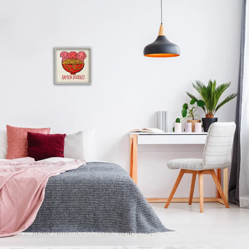Add dimension to any room with our textured Framed Giclee Artwork. Our framed artwork is securely mounted into a 1.5-inch thick wood grain frame and ready to hang. Frames are available in three alluring styles: black, gray farmhouse and white. In addition, you should check out our oversized options if you want a statement piece. Stupell Wall Art is made in the USA.Features: Dimensions: 12 x 1.5 x 12 FramedFramed Giclee Product Sizes Include 12"x12", 17"x17", and 24"x24". Framed Giclee Products have a 1.5" Depth. Wall Art is Ready to Hang with Hardware Free Hanging. No installation required. For Easy Set Up Lean or Layer Artwork on Shelf or Against Wall.Our giclée prints are carefully mounted on a durable MDF backing, and then perfectly finished in a 1.5 inch thick woodgrain frame. Mounted frame colors include black, gray farmhouse and white. Made In USA.Artwork Relates To: Animal, Food, Pasta, Spaghetti, Abstract, Modern, Dog, Pet, Poodle, Humor, Ramen DoodlesDesign by Carrie Cantwell