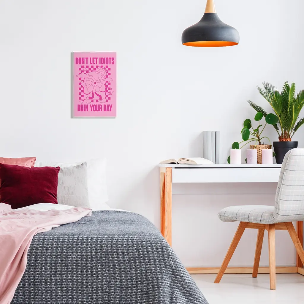 Our wall plaques start as high-quality lithograph prints mounted on durable 0.5-inch thick MDF wood. Each piece is hand finished and comes with a fresh layer of white foil on the sides to give it a crisp, clean look. Plaques arrive ready to hang without installation and come with removable plastic corners to keep them from damage in transit. Wall Art is made in the USA.Features: Dimensions: 10 x 0.5 x 15 InchesWall Plaque Sizes Include Standard: 10 x 0.5 x 15 Oversized: 13 x 0.5 x 19Wall Art is Ready to Hang with Hardware Free Hanging. No installation required. For Easy Set Up Lean or Layer Artwork on Shelf or Against Wall.All of our wall plaques start off as high quality lithograph prints that are then mounted on durable 0.5 inch thick MDF wood. Each piece is hand finished and comes with a fresh layer of foil on the sides to give it a crisp clean look. Made In USA.Artwork Relates To: Retro, Vintage, Pink, Cloud, Sun, Nature, Flower, Daisy, Humor, Don't Let Idiots Ruin Your DayDesign by House of Lulu