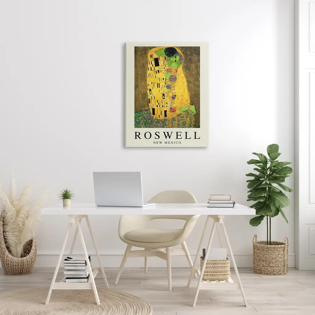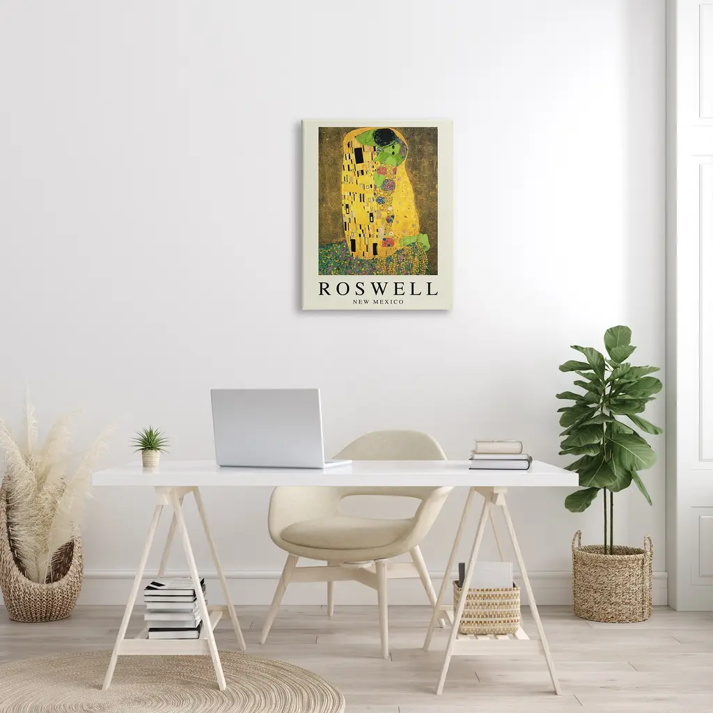 We create our stretched canvas to the highest standards. Using only the highest quality inks and canvas on Mimaki printers, we hand-cut and stretch each piece over a 1.5-inch thick wooden frame for hanging. As a result, the art comes ready to hang on the sturdy ledge with no installation required. Stupell Wall Art is made in the USA.Features: Dimensions: 16 x 1.5 x 20 InchesStretched Canvas Sizes Include Standard: 16 x 1.5 x 20 Large: 20 x 1.5 x 30 X-Large: 30 x 1.5 x 40 Oversized: 36 x 1.5 x 48Wall Art is Ready to Hang - No Installation or Hardware Needed. For Easy Set Up Lean or Layer Artwork on Shelf or Against Wall.Our stretched canvas is created with the highest standards. We use only the highest quality inks and canvas on our in house Mimaki printers, and then hand cut and stretch each piece over a 1.5 inch thick wooden frame for hanging. Made In USA.Artwork Relates To: Klimt, Classic, Painting, Funny, Humor, Roswell New MexicoDesign by Lil' Rue