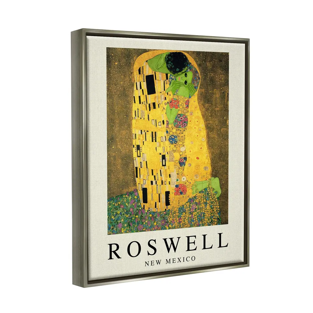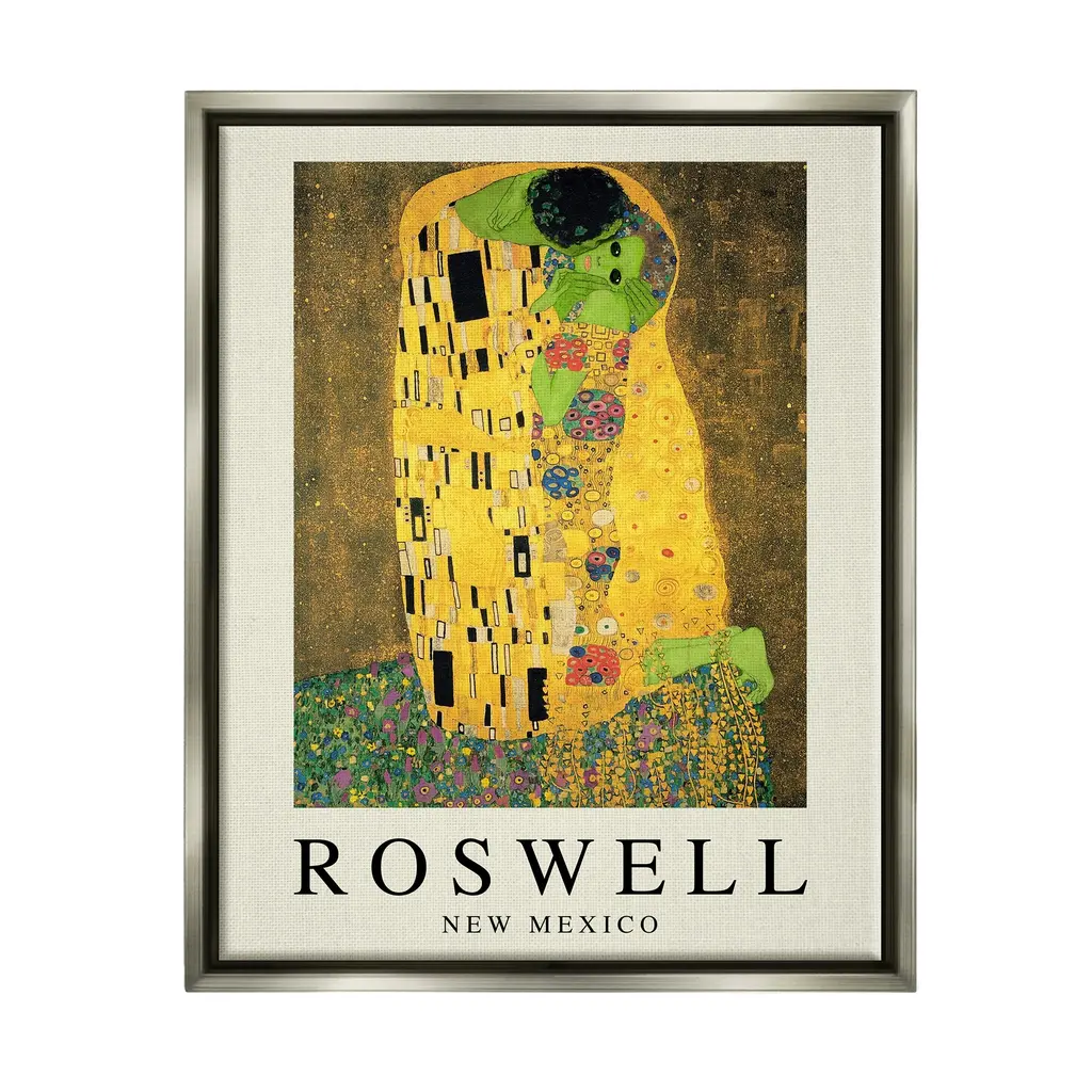 Elevate your home or office to the next level with Stupell Framed Floating Canvas Wall Art. Our premium hand-stretched canvas is mounted securely into a sturdy lightweight frame. The museum-style gap between the wrapped canvas and the box frame gives the illusion of floating artwork. Stupell Wall Art is made in the USA.Features: Dimensions: 17 x 1.7 x 21 Frame, 16 x 1.5 x 20 Canvas ArtFloating Frame Sizes Include Standard: 17 x 1.7 x 21 Oversized: 25 x 1.7 x 31Wall Art is Ready to Hang - No Installation or Hardware Needed. For Easy Set Up Lean or Layer Artwork on Shelf or Against Wall.Our elevated 1.7" Thick Floating Frame is the perfect complement to our canvas style Wall Art. We use only the highest quality inks in house with industry leading printing solutions. Canvas is hand stretched over a durable wood foundation and then mounted securly into a Modern Box Frame. Made in the USA.Artwork Relates To: Klimt, Classic, Painting, Funny, Humor, Roswell New MexicoDesign by Lil' Rue
