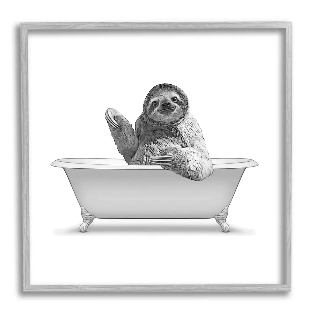 Our Framed Giclee Wall Art adds a touch of class to any space in your home or office. Frames are available in three alluring styles: black, gray farmhouse and white. Our textured artwork will add more depth and dimension to any space. Each piece is mounted with a 1.5 inch thick wood grain frame that is ready to hang! Looking for a statement piece? We have oversized artwork available.Features:Framed Giclee Sizes IncludeStandard: 12 x 1.5 x 12Large: 17 x 1.5 x 17Oversized: 24 x 1.5 x 24Wall Art is Ready to Hang - No Installation or Hardware Needed. For Easy Set Up Lean or Layer Artwork on Shelf or Against Wall.Artwork Relates To: Bathtub, Tub, Bathroom, Sloth, Wildlife, AnimalOur giclee prints are carefully mounted on a durable MDF backing, and then perfectly finished in a 1.5 inch thick woodgrain frame. Mounted frame colors include black, gray farmhouse and white. Made In USA.Design by Annalisa Latella