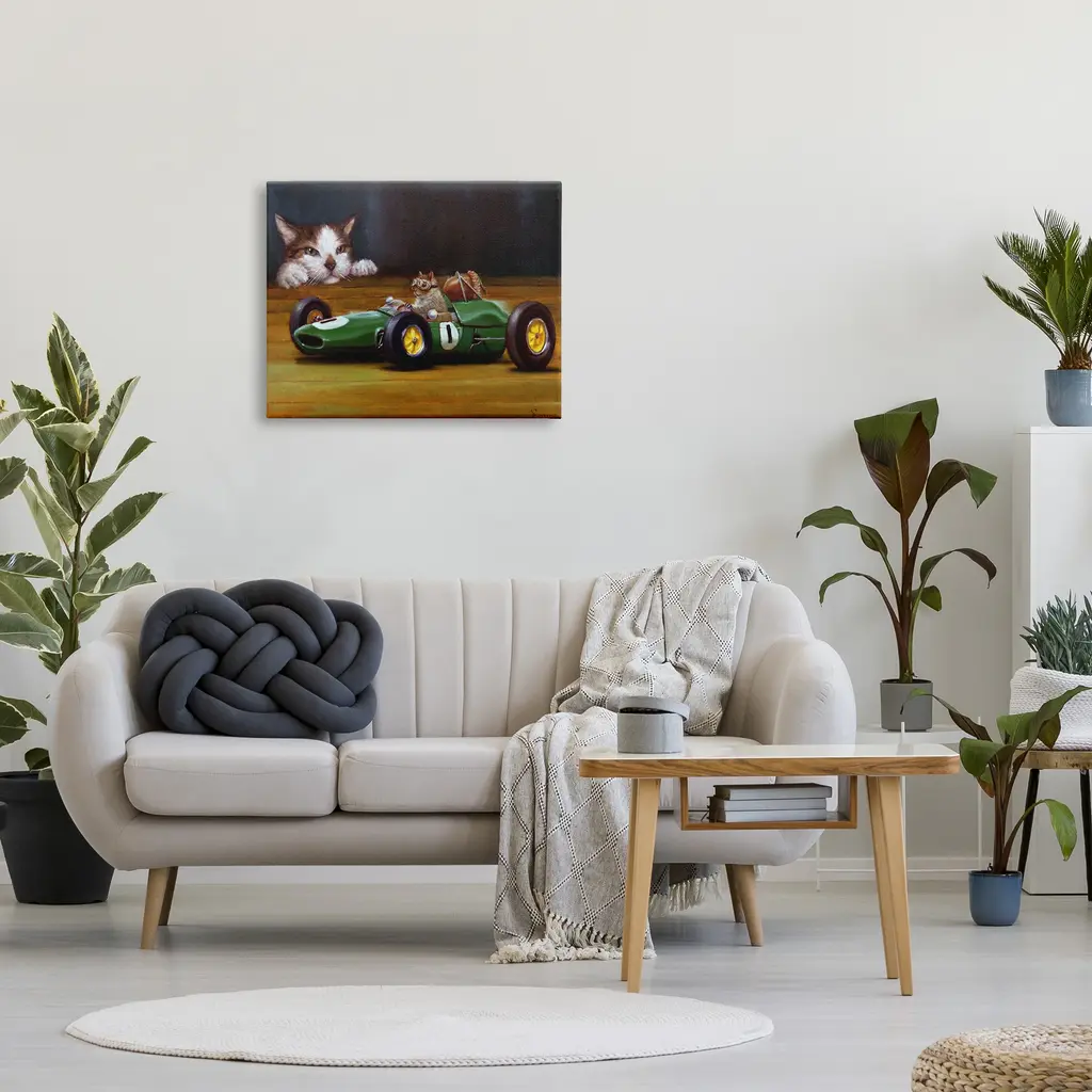We create our stretched canvas to the highest standards. Using only the highest quality inks and canvas on Mimaki printers, we hand-cut and stretch each piece over a 1.5-inch thick wooden frame for hanging. As a result, the art comes ready to hang on the sturdy ledge with no installation required. Stupell Wall Art is made in the USA.Features: Dimensions: 20 x 1.5 x 16 InchesStretched Canvas Sizes Include Standard: 20 x 1.5 x 16 Large: 30 x 1.5 x 20 X-Large: 40 x 1.5 x 30 Oversized: 48 x 1.5 x 36Wall Art is Ready to Hang with Hardware Free Hanging. No installation required. For Easy Set Up Lean or Layer Artwork on Shelf or Against Wall.Our stretched canvas is created with the highest standards. We use only the highest quality inks and canvas on our in house Mimaki printers, and then hand cut and stretch each piece over a 1.5 inch thick wooden frame for hanging. Made In USA.Artwork Relates To: Animal, Cat, Mammal, Pet, Rat, Rodent, Painting, Angora, Manx, Buggy, Race CarDesign by Lucia Heffernan
