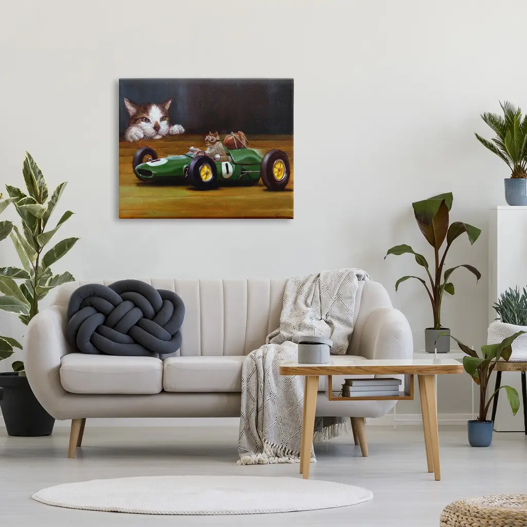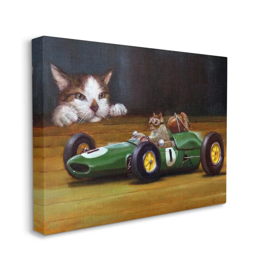We create our stretched canvas to the highest standards. Using only the highest quality inks and canvas on Mimaki printers, we hand-cut and stretch each piece over a 1.5-inch thick wooden frame for hanging. As a result, the art comes ready to hang on the sturdy ledge with no installation required. Stupell Wall Art is made in the USA.Features: Dimensions: 20 x 1.5 x 16 InchesStretched Canvas Sizes Include Standard: 20 x 1.5 x 16 Large: 30 x 1.5 x 20 X-Large: 40 x 1.5 x 30 Oversized: 48 x 1.5 x 36Wall Art is Ready to Hang with Hardware Free Hanging. No installation required. For Easy Set Up Lean or Layer Artwork on Shelf or Against Wall.Our stretched canvas is created with the highest standards. We use only the highest quality inks and canvas on our in house Mimaki printers, and then hand cut and stretch each piece over a 1.5 inch thick wooden frame for hanging. Made In USA.Artwork Relates To: Animal, Cat, Mammal, Pet, Rat, Rodent, Painting, Angora, Manx, Buggy, Race CarDesign by Lucia Heffernan