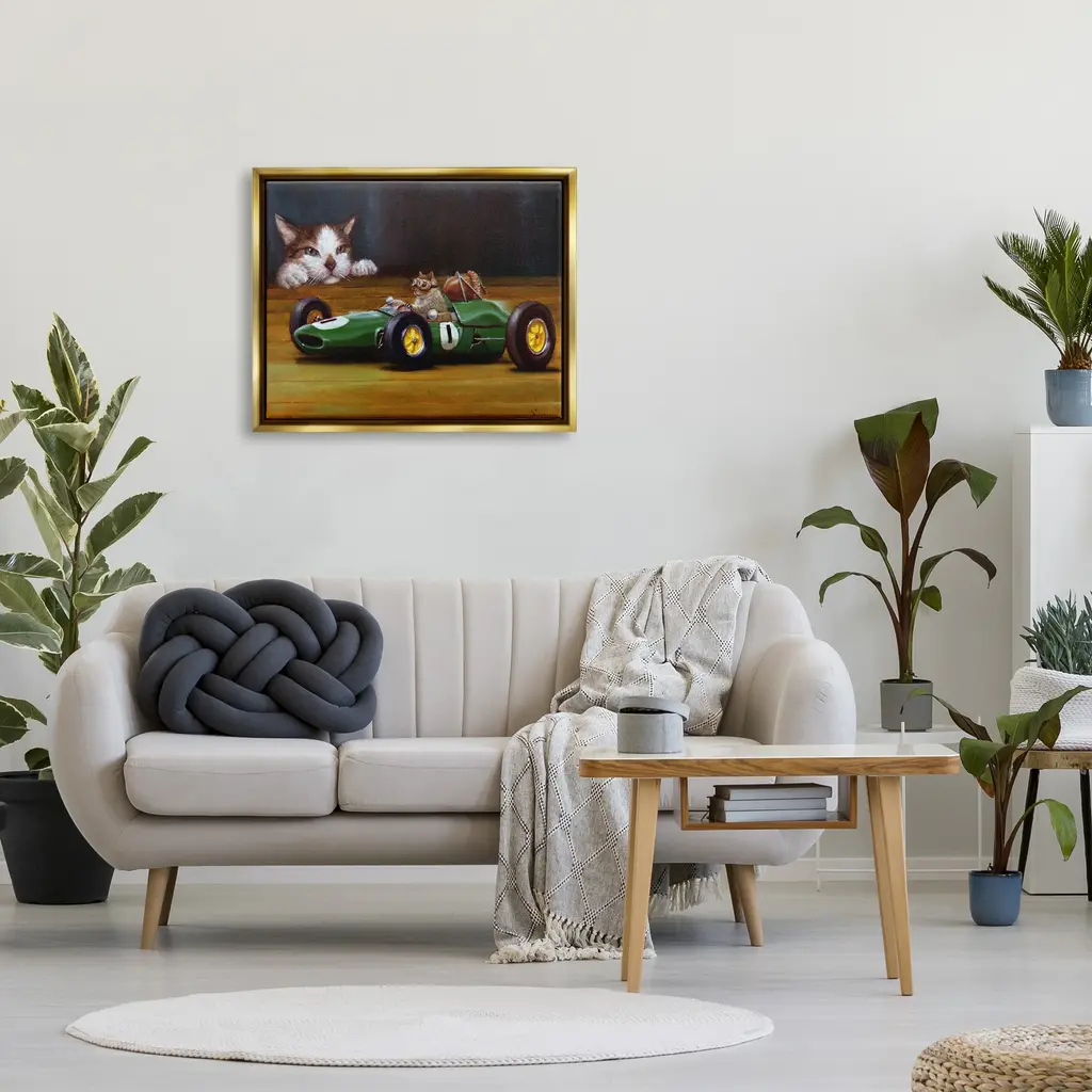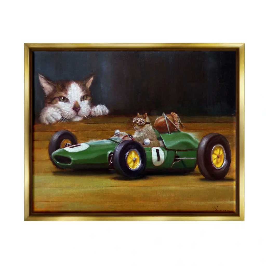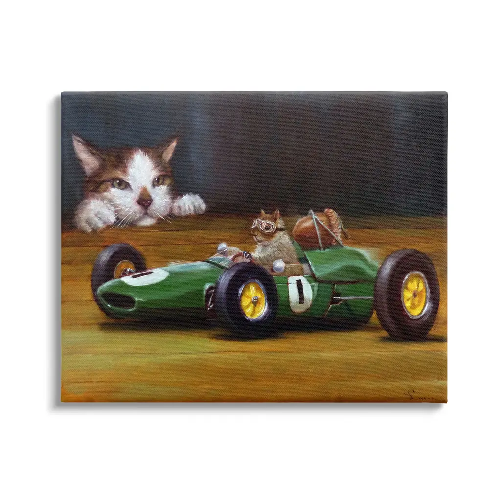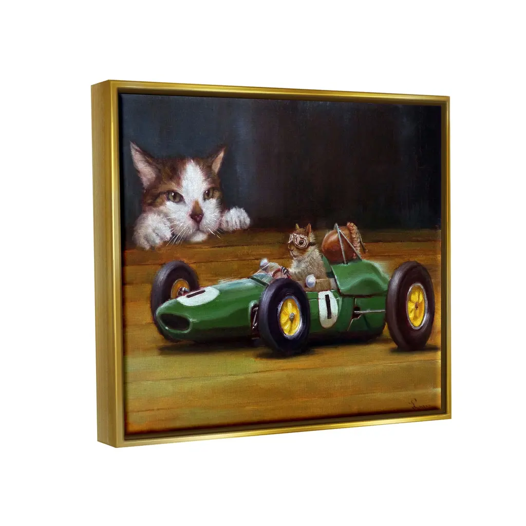 Elevate your home or office to the next level with Stupell Framed Floating Canvas Wall Art. Our premium hand-stretched canvas is mounted securely into a sturdy lightweight frame. The museum-style gap between the wrapped canvas and the box frame gives the illusion of floating artwork. Stupell Wall Art is made in the USA.Features: Dimensions: 21 x 1.7 x 17 Frame, 20 x 1.5 x 16 Canvas ArtFloating Frame Sizes Include Standard: 21 x 1.7 x 17 Oversized: 31 x 1.7 x 25Wall Art is Ready to Hang with Hardware Free Hanging. No installation required. For Easy Set Up Lean or Layer Artwork on Shelf or Against Wall.Our elevated 1.7" Thick Floating Frame is the perfect complement to our canvas style Wall Art. We use only the highest quality inks in house with industry leading printing solutions. Canvas is hand stretched over a durable wood foundation and then mounted securly into a Modern Box Frame. Made in the USA.Artwork Relates To: Animal, Cat, Mammal, Pet, Rat, Rodent, Painting, Angora, Manx, Buggy, Race CarDesign by Lucia Heffernan