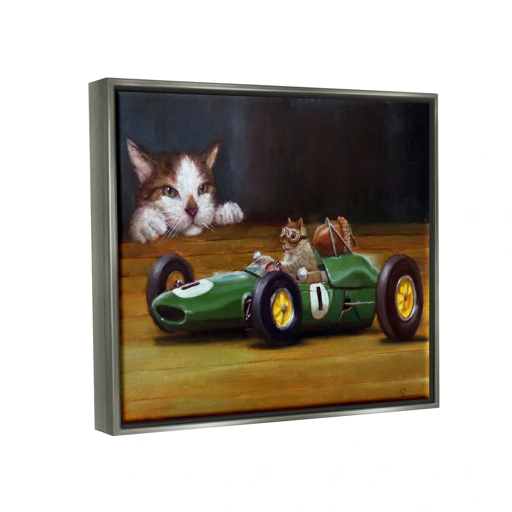 Stupell Funny Squirrel In Race Car Framed Floater Canvas Wall Art Design By Lucia Heffernan - 31 X 25 - Grey