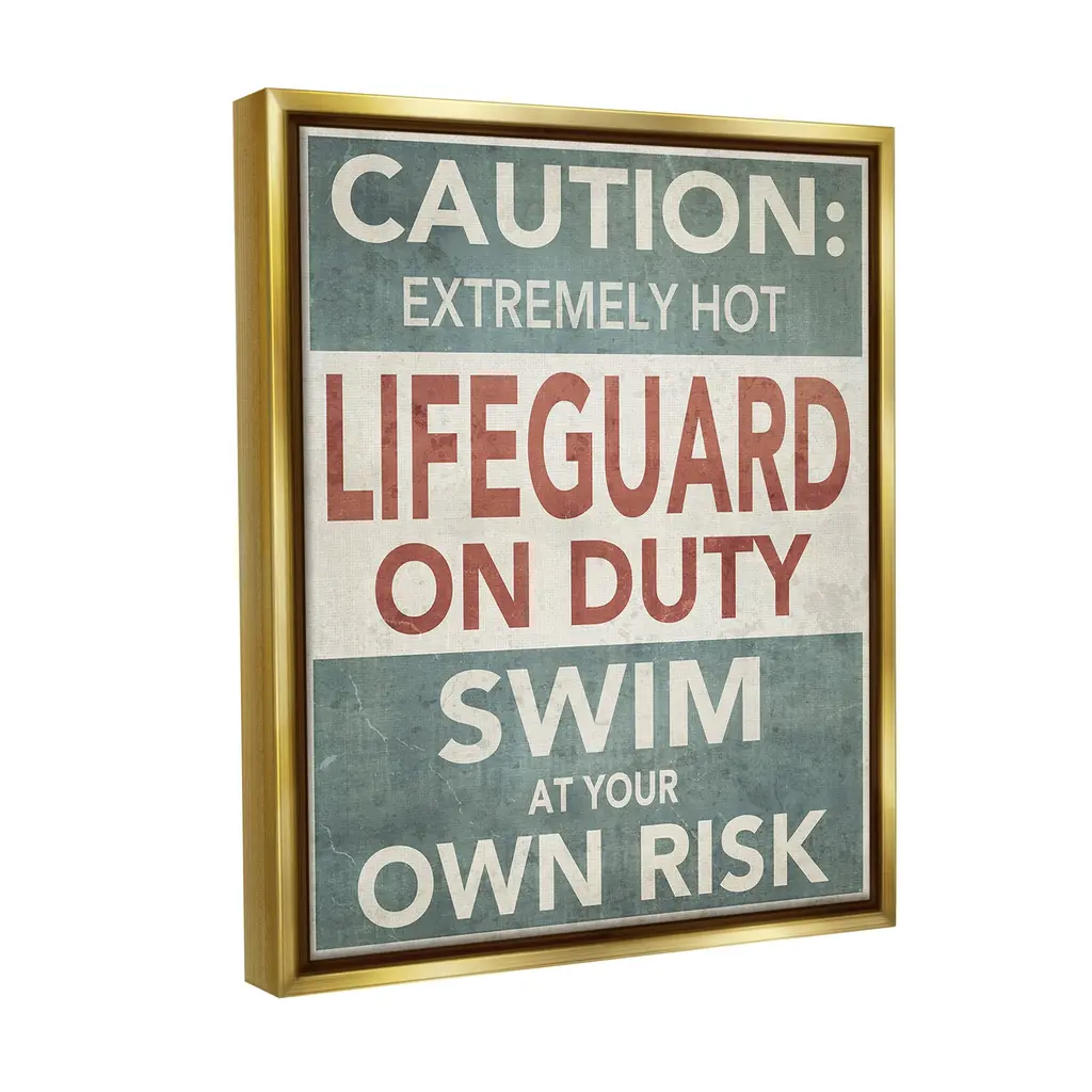 Elevate your home or office to the next level with Stupell Framed Floating Canvas Wall Art. Our premium hand-stretched canvas is mounted securely into a sturdy lightweight frame. The museum-style gap between the wrapped canvas and the box frame gives the illusion of floating artwork. Stupell Wall Art is made in the USA.Features: Dimensions: 17 x 1.7 x 21 Frame, 16 x 1.5 x 20 Canvas ArtFloating Frame Canvas Products are available in sizes 17"x21" and 25"x31". All Floating Frame Canvas Products have a 1.7" Depth.Wall Art is Ready to Hang with Hardware Free Hanging. No Installation required. For Easy Set Up Lean or Layer Artwork on Shelf or Against Wall. Artwork is Permently Fixed into the Frame.Our elevated 1.7" Thick Floating Frame is the perfect complement to our canvas style Wall Art. We use only the highest quality inks in house with industry leading printing solutions. Canvas is hand stretched over a durable wood foundation and then mounted securly into a Modern Box Frame. Made in the USA.Artwork Relates To: Phrase, Humor, Nautical, Beach, Rustic, Vintage, Lake, Caution, Extremely Hot Lifeguard on Duty, Swim at Your Own RiskDesign by GraffiTee Studios