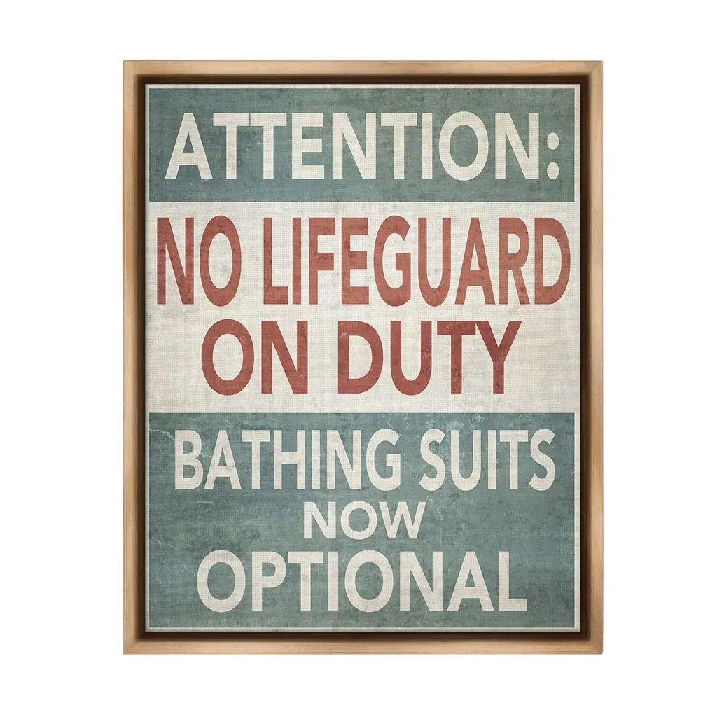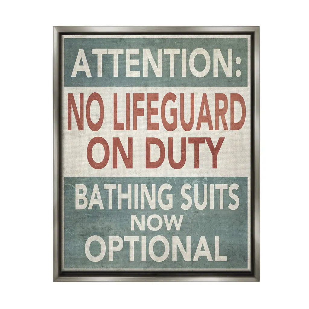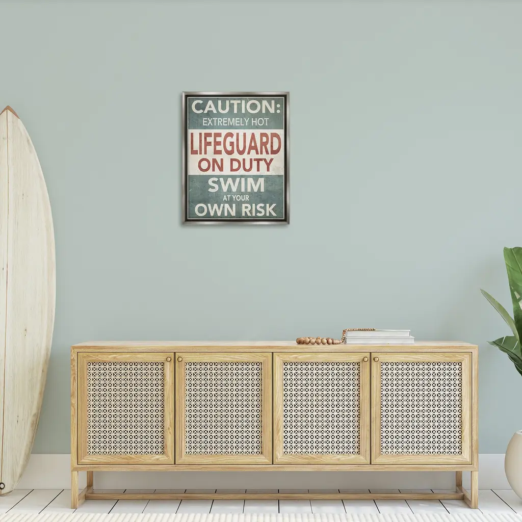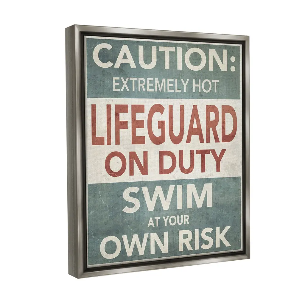 Elevate your home or office to the next level with Stupell Framed Floating Canvas Wall Art. Our premium hand-stretched canvas is mounted securely into a sturdy lightweight frame. The museum-style gap between the wrapped canvas and the box frame gives the illusion of floating artwork. Stupell Wall Art is made in the USA.Features: Dimensions: 17 x 1.7 x 21 Frame, 16 x 1.5 x 20 Canvas ArtFloating Frame Canvas Products are available in sizes 17"x21" and 25"x31". All Floating Frame Canvas Products have a 1.7" Depth.Wall Art is Ready to Hang with Hardware Free Hanging. No Installation required. For Easy Set Up Lean or Layer Artwork on Shelf or Against Wall. Artwork is Permently Fixed into the Frame.Our elevated 1.7" Thick Floating Frame is the perfect complement to our canvas style Wall Art. We use only the highest quality inks in house with industry leading printing solutions. Canvas is hand stretched over a durable wood foundation and then mounted securly into a Modern Box Frame. Made in the USA.Artwork Relates To: Phrase, Humor, Nautical, Beach, Rustic, Vintage, Lake, Caution, Extremely Hot Lifeguard on Duty, Swim at Your Own RiskDesign by GraffiTee Studios