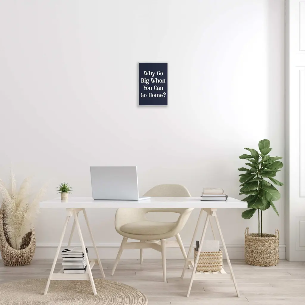 Our wall plaques start as high-quality lithograph prints mounted on durable 0.5-inch thick MDF wood. Each piece is hand finished and comes with a fresh layer of white foil on the sides to give it a crisp, clean look. Plaques arrive ready to hang without installation and come with removable plastic corners to keep them from damage in transit. Stupell Wall Art is made in the USA.Features: Dimensions: 10 x 0.5 x 15 InchesWall Plaque Product Sizes Include 10"x15" and 13"x19". All wall plaque products have a 0.5" Depth. Wall Art is Ready to Hang with Hardware Free Hanging. No installation required. For Easy Set Up Lean or Layer Artwork on Shelf or Against Wall.All of our wall plaques start off as high quality lithograph prints that are then mounted on durable 0.5 inch thick MDF wood. Each piece is hand finished and comes with a fresh layer of foil on the sides to give it a crisp clean look. Made In USA.Artwork Relates To: Phrase, Minimal, Introvert, Traditional, Humor, Why Go Big When You Can Go Home?Design by Lil' Rue