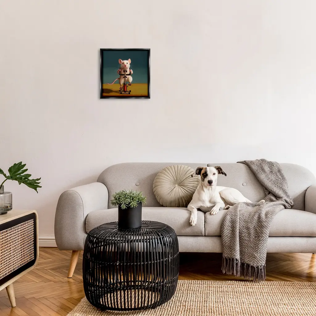 Elevate your home or office to the next level with Stupell Framed Floating Canvas Wall Art. Our premium hand-stretched canvas is mounted securely into a sturdy lightweight frame. The museum-style gap between the wrapped canvas and the box frame gives the illusion of floating artwork. Stupell Wall Art is made in the USA.Features: Dimensions: 18 x 1.7 x 18 Frame, 17 x 1.5 x 17 Canvas ArtFloating Frame Canvas Products are available in sizes 18"x18" and 25"x25". All Floating Frame Canvas Products have a 1.7" Depth.Wall Art is Ready to Hang with Hardware Free Hanging. No Installation required. For Easy Set Up Lean or Layer Artwork on Shelf or Against Wall. Artwork is Permently Fixed into the Frame.Our elevated 1.7" Thick Floating Frame is the perfect complement to our canvas style Wall Art. We use only the highest quality inks in house with industry leading printing solutions. Canvas is hand stretched over a durable wood foundation and then mounted securly into a Modern Box Frame. Made in the USA.Artwork Relates To: Animal, Mammal, Rodent, Rat, Pet, Exercise, Workout, Humor, FunnyDesign by Lucia Heffernan