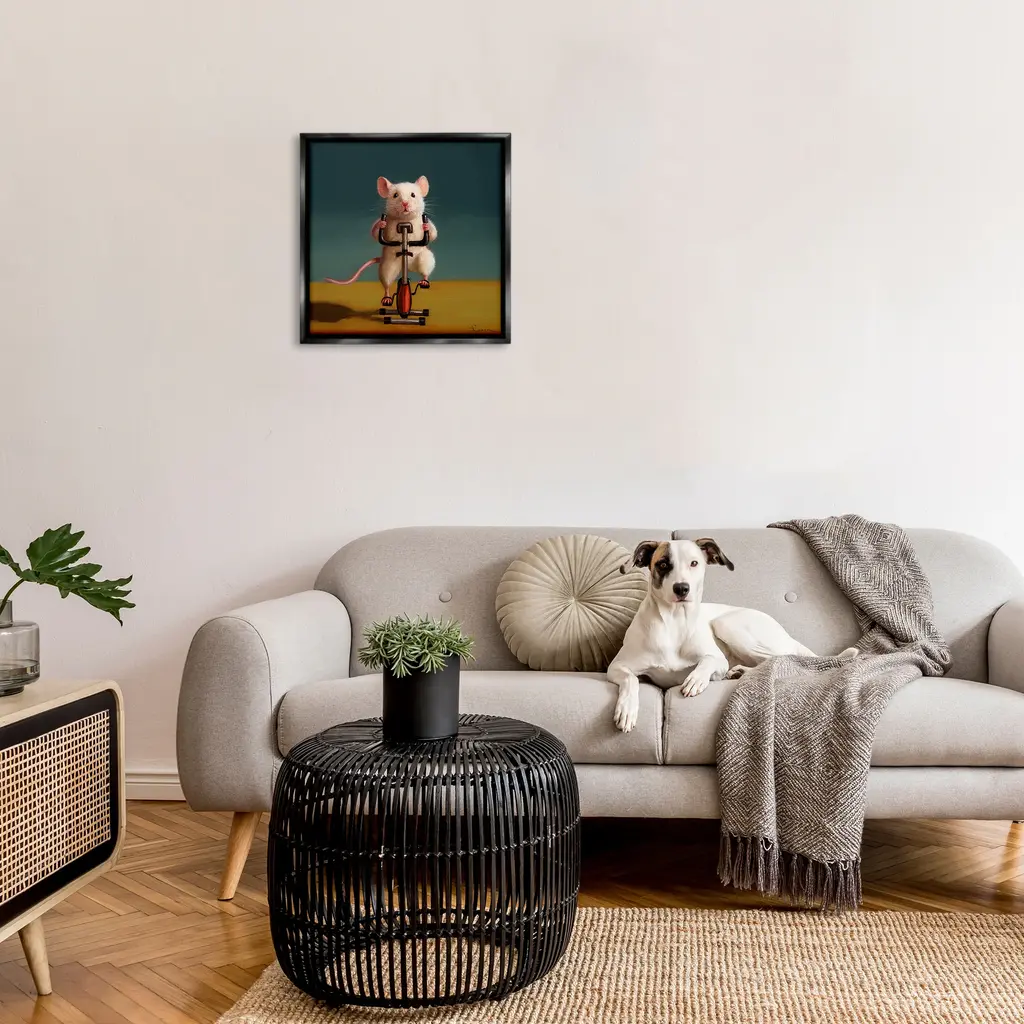 Elevate your home or office to the next level with Stupell Framed Floating Canvas Wall Art. Our premium hand-stretched canvas is mounted securely into a sturdy lightweight frame. The museum-style gap between the wrapped canvas and the box frame gives the illusion of floating artwork. Stupell Wall Art is made in the USA.Features: Dimensions: 18 x 1.7 x 18 Frame, 17 x 1.5 x 17 Canvas ArtFloating Frame Canvas Products are available in sizes 18"x18" and 25"x25". All Floating Frame Canvas Products have a 1.7" Depth.Wall Art is Ready to Hang with Hardware Free Hanging. No Installation required. For Easy Set Up Lean or Layer Artwork on Shelf or Against Wall. Artwork is Permently Fixed into the Frame.Our elevated 1.7" Thick Floating Frame is the perfect complement to our canvas style Wall Art. We use only the highest quality inks in house with industry leading printing solutions. Canvas is hand stretched over a durable wood foundation and then mounted securly into a Modern Box Frame. Made in the USA.Artwork Relates To: Animal, Mammal, Rodent, Rat, Pet, Exercise, Workout, Humor, FunnyDesign by Lucia Heffernan