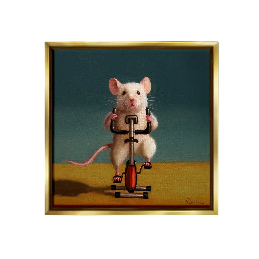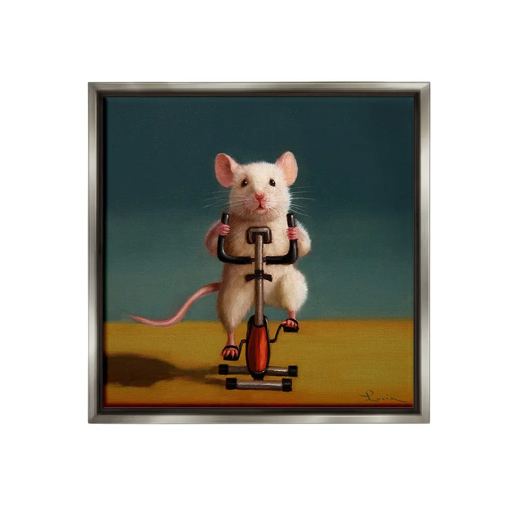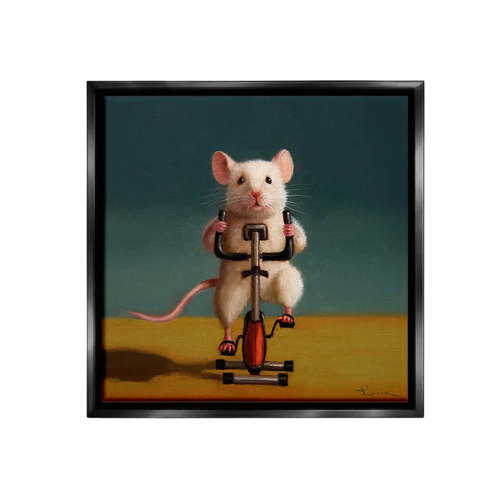 Add dimension to any room with our textured Framed Giclee Artwork. Our framed artwork is securely mounted into a 1.5-inch thick wood grain frame and ready to hang. Frames are available in three alluring styles: black, gray farmhouse and white. In addition, you should check out our oversized options if you want a statement piece. Stupell Wall Art is made in the USA.Features: Dimensions: 12 x 1.5 x 12 FramedFramed Giclee Product Sizes Include 12"x12", 17"x17", and 24"x24". Framed Giclee Products have a 1.5" Depth. Wall Art is Ready to Hang with Hardware Free Hanging. No installation required. For Easy Set Up Lean or Layer Artwork on Shelf or Against Wall.Our giclée prints are carefully mounted on a durable MDF backing, and then perfectly finished in a 1.5 inch thick woodgrain frame. Mounted frame colors include black, gray farmhouse and white. Made In USA.Artwork Relates To: Animal, Mammal, Rodent, Rat, Pet, Exercise, Workout, Humor, FunnyDesign by Lucia Heffernan