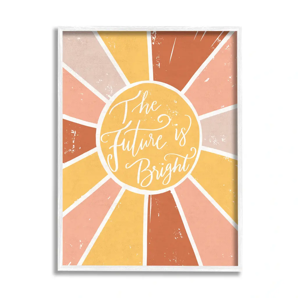Add dimension to any room with our textured Framed Giclee Artwork. Our framed artwork is securely mounted into a 1.5-inch thick wood grain frame and ready to hang. Frames are available in three alluring styles: black, gray farmhouse and white. In addition, you should check out our oversized options if you want a statement piece. Stupell Wall Art is made in the USA.Features: Dimensions: 11 x 1.5 x 14 FramedFramed Giclee Sizes Include Standard: 11 x 1.5 x 14 Large: 16 x 1.5 x 20 Oversized: 24 x 1.5 x 30Wall Art is Ready to Hang - No Installation or Hardware Needed. For Easy Set Up Lean or Layer Artwork on Shelf or Against Wall.Our giclée prints are carefully mounted on a durable MDF backing, and then perfectly finished in a 1.5 inch thick woodgrain frame. Mounted frame colors include black, gray farmhouse and white. Made In USA.Artwork Relates To: Sun, Boho, Neutral, The Future Is BrightDesign by Caroline Alfreds