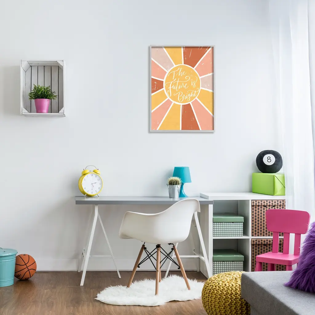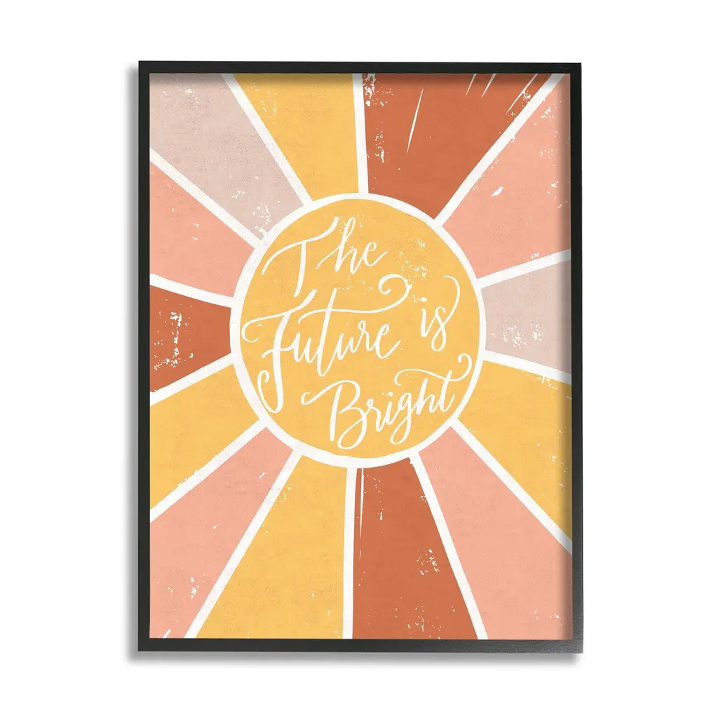 Add dimension to any room with our textured Framed Giclee Artwork. Our framed artwork is securely mounted into a 1.5-inch thick wood grain frame and ready to hang. Frames are available in three alluring styles: black, gray farmhouse and white. In addition, you should check out our oversized options if you want a statement piece. Stupell Wall Art is made in the USA.Features: Dimensions: 11 x 1.5 x 14 FramedFramed Giclee Sizes Include Standard: 11 x 1.5 x 14 Large: 16 x 1.5 x 20 Oversized: 24 x 1.5 x 30Wall Art is Ready to Hang - No Installation or Hardware Needed. For Easy Set Up Lean or Layer Artwork on Shelf or Against Wall.Our giclée prints are carefully mounted on a durable MDF backing, and then perfectly finished in a 1.5 inch thick woodgrain frame. Mounted frame colors include black, gray farmhouse and white. Made In USA.Artwork Relates To: Sun, Boho, Neutral, The Future Is BrightDesign by Caroline Alfreds