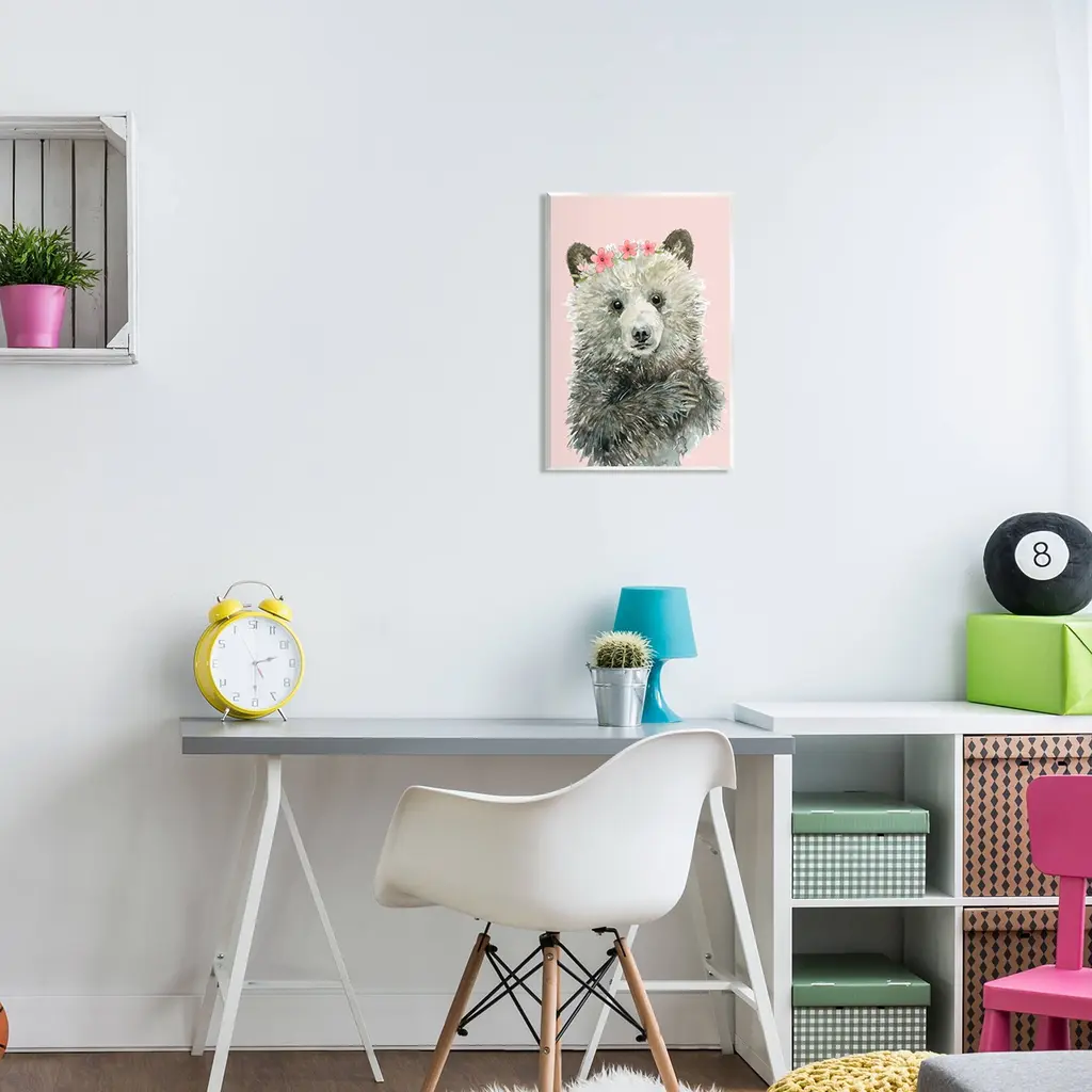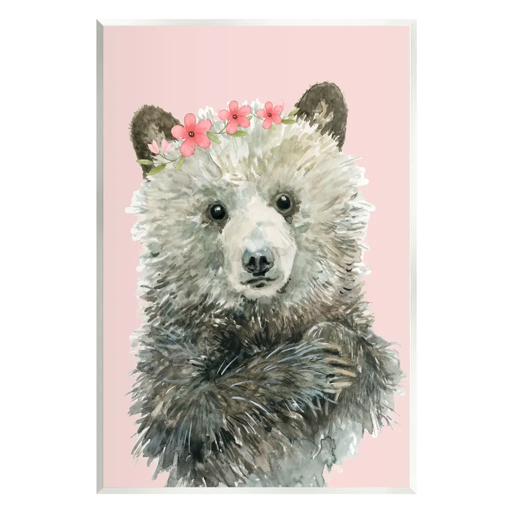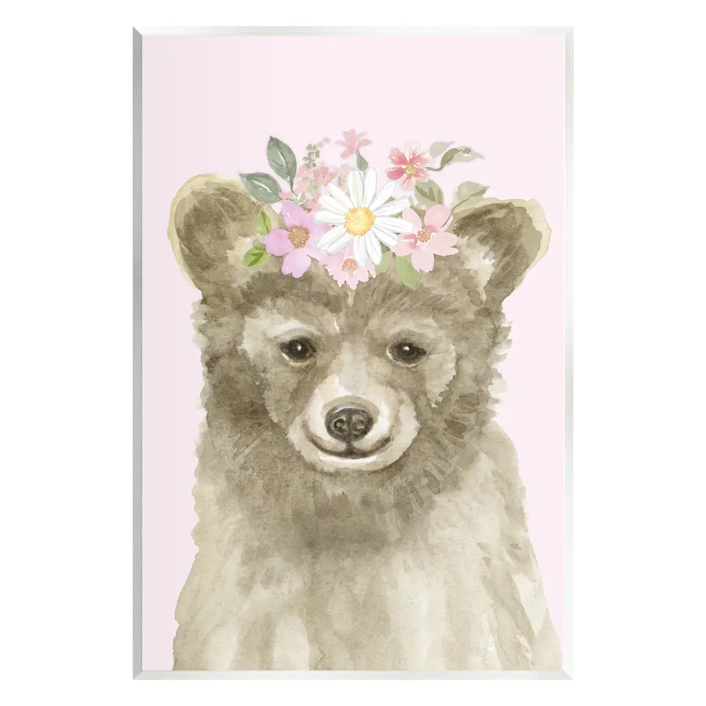 Stupell Fuzzy Bear With Floral Crown Wall Plaque Art Design By Carol Robinson - 13 X 19