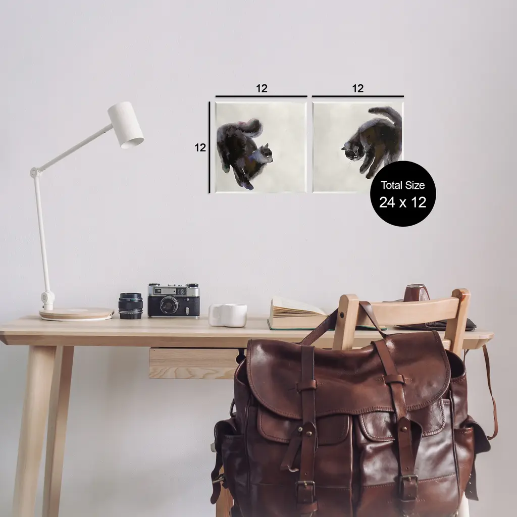 Fill any space with Stupell Wall Art Sets. Our wall plaques start as high-quality lithograph prints mounted on durable 0.5-inch thick MDF wood. Each piece is hand finished and comes with a fresh layer of white foil on the sides to give it a crisp, clean look. Plaques arrive ready to hang without installation and come with removable plastic corners to keep them from damage in transit. Stupell Wall Art is made in the USA.Features: Dimensions: 2 Piece Set, Each Panel is 12 x 0.5 x 12 InchesWall Art is Ready to Hang with Hardware Free Hanging. No Installation required. For Easy Set Up Lean or Layer Artwork on Shelf or Against Wall. Artwork is Permently Fixed into the Frame.All of our wall plaques start off as high quality lithograph prints that are then mounted on durable 0.5 inch thick MDF wood. Each piece is hand finished and comes with a fresh layer of foil on the sides to give it a crisp clean look. Made In USA.Artwork Relates To: Animal, Pet, Cat, Simple, MinimalDesign by Melissa Wang