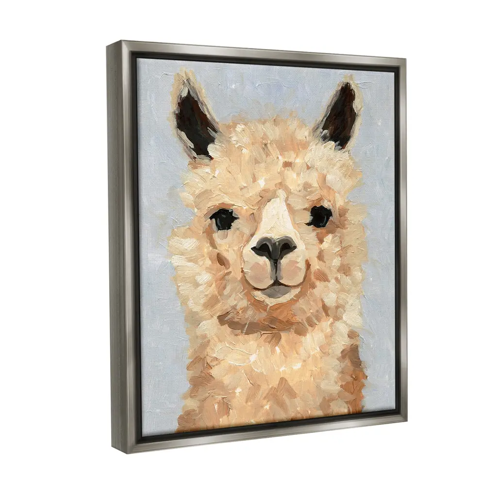 Elevate your home or office to the next level with Stupell Framed Floating Canvas Wall Art. Our premium hand-stretched canvas is mounted securely into a sturdy lightweight frame. The museum-style gap between the wrapped canvas and the box frame gives the illusion of floating artwork. Stupell Wall Art is made in the USA.Features: Dimensions: 17 x 1.7 x 21 Frame, 16 x 1.5 x 20 Canvas ArtFloating Frame Canvas Products are available in sizes 17"x21" and 25"x31". All Floating Frame Canvas Products have a 1.7" Depth.Wall Art is Ready to Hang with Hardware Free Hanging. No Installation required. For Easy Set Up Lean or Layer Artwork on Shelf or Against Wall. Artwork is Permently Fixed into the Frame.Our elevated 1.7" Thick Floating Frame is the perfect complement to our canvas style Wall Art. We use only the highest quality inks in house with industry leading printing solutions. Canvas is hand stretched over a durable wood foundation and then mounted securly into a Modern Box Frame. Made in the USA.Artwork Relates To: Animal, Mammal, , Llama, Farm, Abstract, PaintingDesign by Victoria Barnes