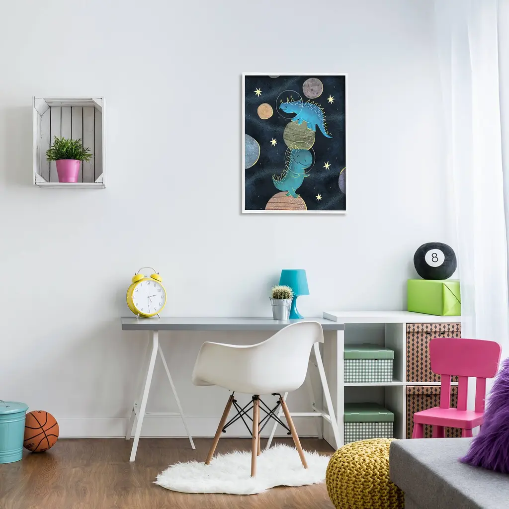 Stupell Galactic Dinosaur Astronauts Outer Space Planets Framed Wall Art - Blue - 24 X 30 - White