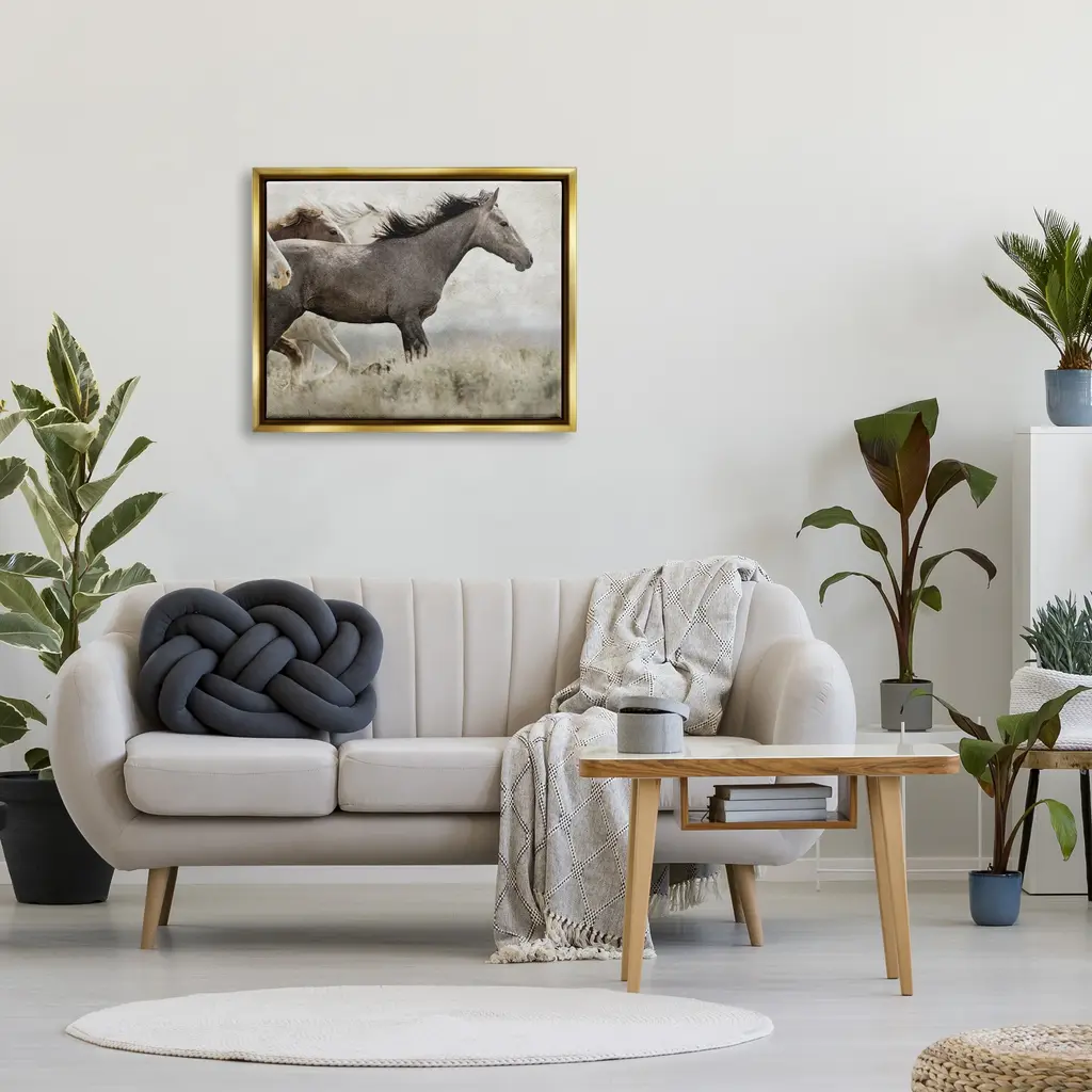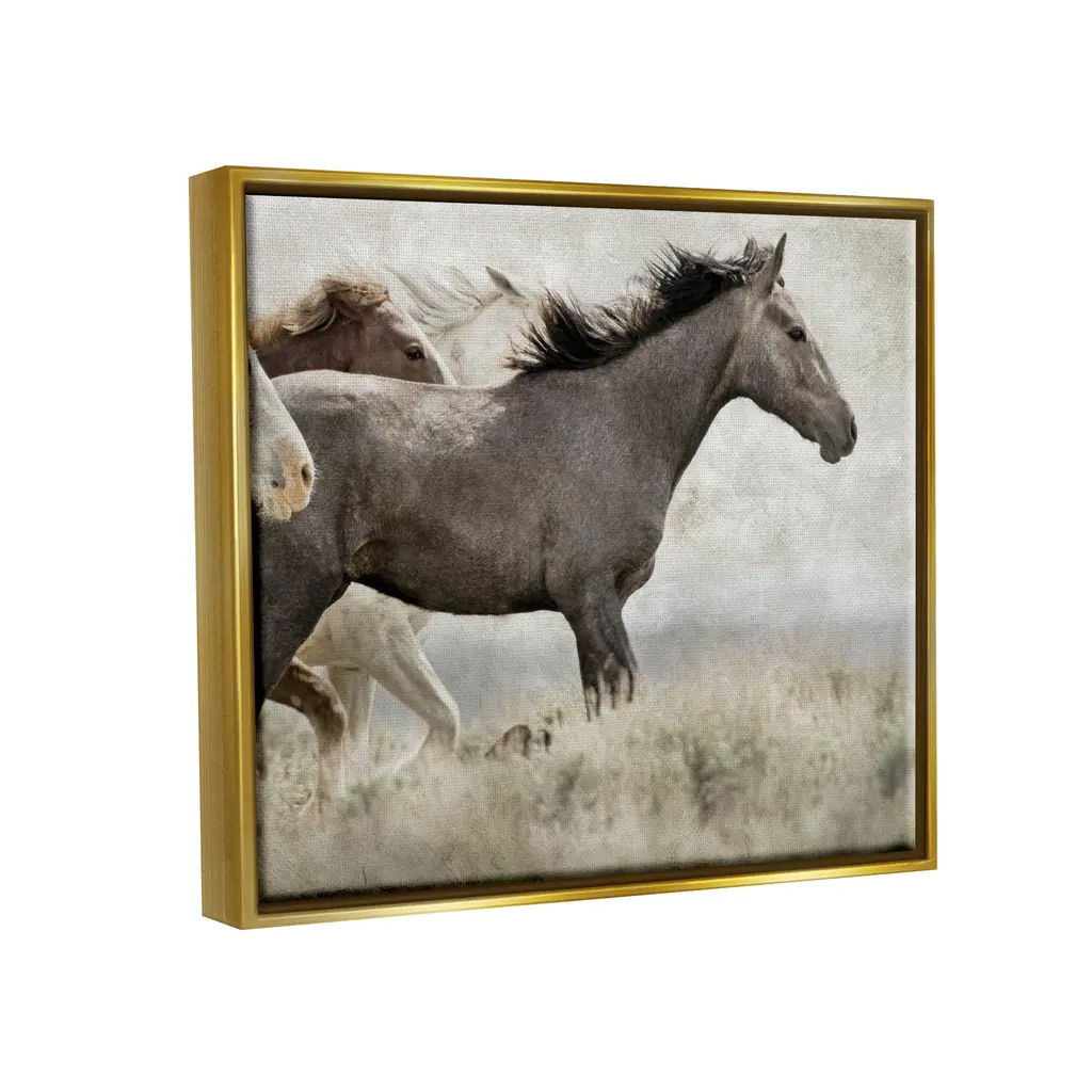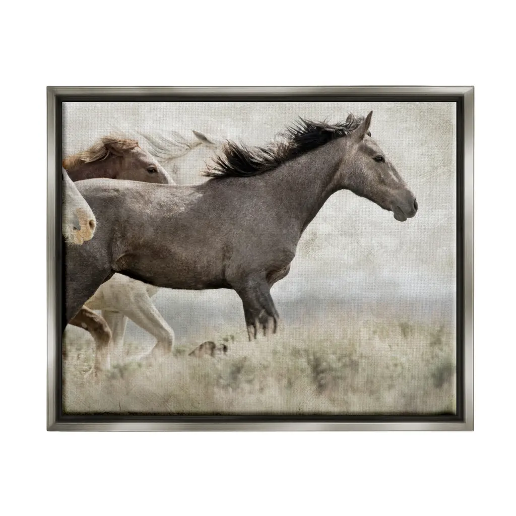 Stupell Galloping Horse Herd Photography Framed Floater Canvas Wall Art By Danita Delimont - 20 X 16 - Grey