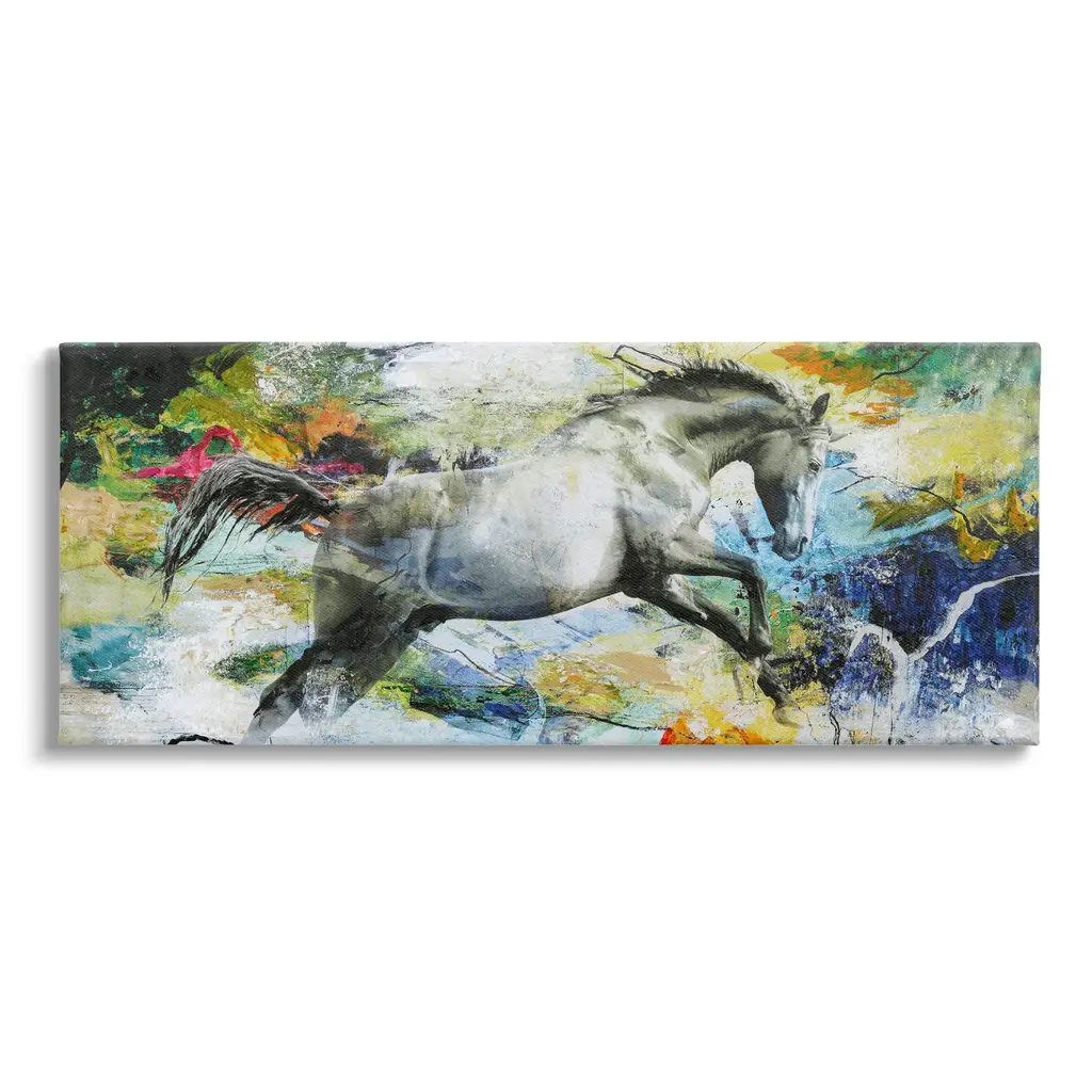 Stupell Galloping Horse Modern Splatter Canvas Wall Art Design By Design Fabrikken - 30 X 13