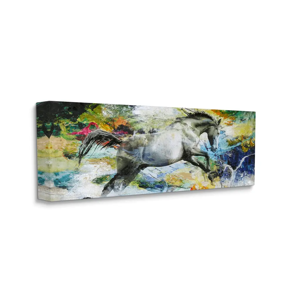 Stupell Galloping Horse Modern Splatter Canvas Wall Art Design By Design Fabrikken - 40 X 17