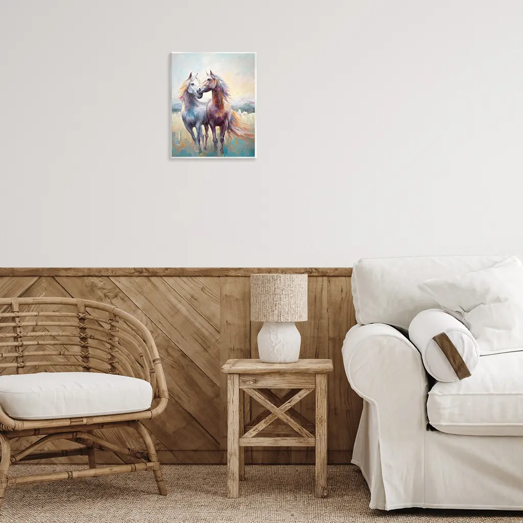 Our wall plaques start as high-quality lithograph prints mounted on durable 0.5-inch thick MDF wood. Each piece is hand finished and comes with a fresh layer of white foil on the sides to give it a crisp, clean look. Plaques arrive ready to hang without installation and come with removable plastic corners to keep them from damage in transit. Stupell Wall Art is made in the USA.Features: Dimensions: 11 x 0.5 x 14 InchesWall Art is Ready to Hang with Hardware Free Hanging. No installation required. For Easy Set Up Lean or Layer Artwork on Shelf or Against Wall.All of our wall plaques start off as high quality lithograph prints that are then mounted on durable 0.5 inch thick MDF wood. Each piece is hand finished and comes with a fresh layer of foil on the sides to give it a crisp clean look. Made In USA.Artwork Relates To: Animal, Colt Horse, Horse, Mammal, Painting, Stallion, Landscape, MeadowDesign by Ramona Murdock