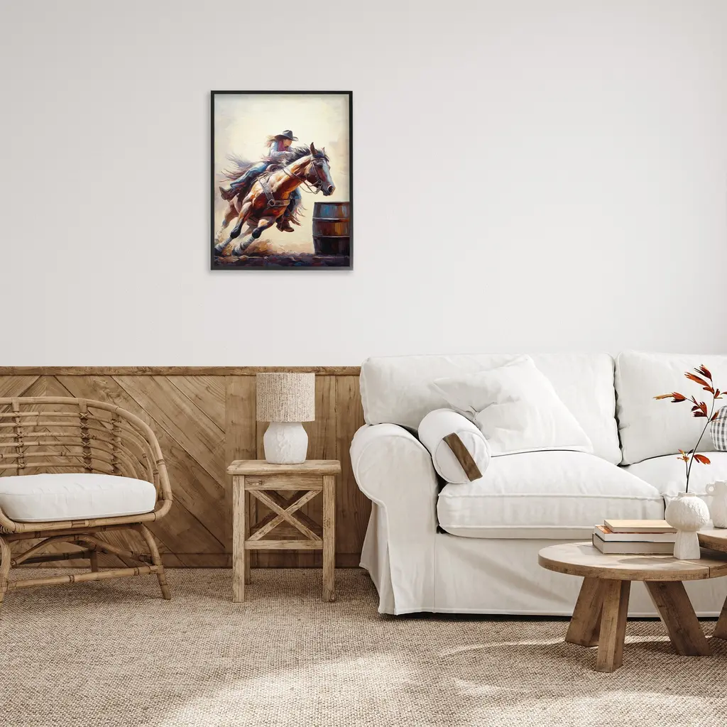 Add dimension to any room with our textured Framed Giclee Artwork. Our framed artwork is securely mounted into a 1.5-inch thick wood grain frame and ready to hang. Frames are available in three alluring styles: black, gray farmhouse and white. In addition, you should check out our oversized options if you want a statement piece. Stupell Wall Art is made in the USA.Features: Dimensions: 11 x 1.5 x 14 FramedFramed Giclee Products are available in the sizes 11"x14", 16"x20" or 24"x30". All Framed Giclee Products have a 1.5" Depth. Wall Art is Ready to Hang with Hardware Free Hanging. No installation required. For Easy Set Up Lean or Layer Artwork on Shelf or Against Wall.Our giclée prints are carefully mounted on a durable MDF backing, and then perfectly finished in a 1.5 inch thick woodgrain frame. Mounted frame colors include black, gray farmhouse and white. Made In USA.Artwork Relates To: Equestrian, Rodeo, Country, Southwestern, Cowgirl, Animal, Horse, Racing, GallopingDesign by Ramona Murdock