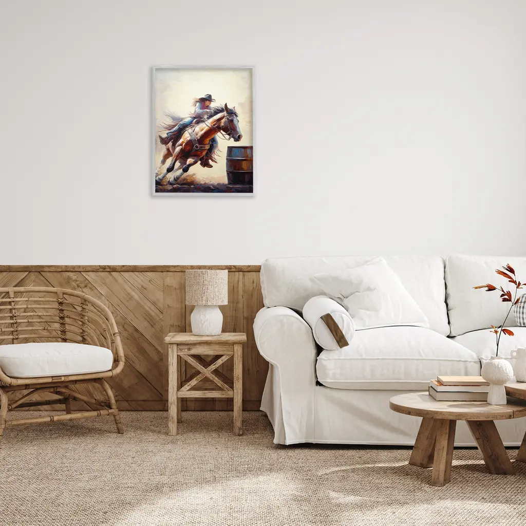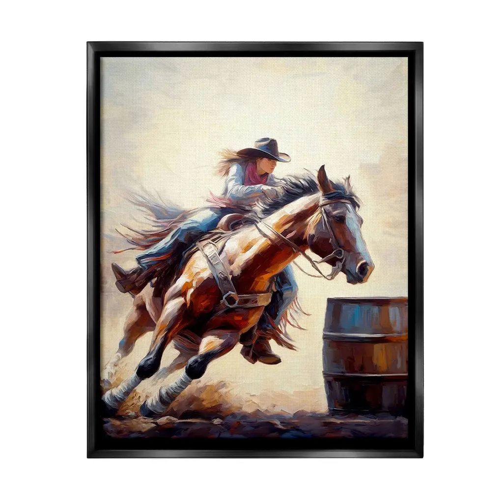 Add dimension to any room with our textured Framed Giclee Artwork. Our framed artwork is securely mounted into a 1.5-inch thick wood grain frame and ready to hang. Frames are available in three alluring styles: black, gray farmhouse and white. In addition, you should check out our oversized options if you want a statement piece. Stupell Wall Art is made in the USA.Features: Dimensions: 11 x 1.5 x 14 FramedFramed Giclee Products are available in the sizes 11"x14", 16"x20" or 24"x30". All Framed Giclee Products have a 1.5" Depth. Wall Art is Ready to Hang with Hardware Free Hanging. No installation required. For Easy Set Up Lean or Layer Artwork on Shelf or Against Wall.Our giclée prints are carefully mounted on a durable MDF backing, and then perfectly finished in a 1.5 inch thick woodgrain frame. Mounted frame colors include black, gray farmhouse and white. Made In USA.Artwork Relates To: Equestrian, Rodeo, Country, Southwestern, Cowgirl, Animal, Horse, Racing, GallopingDesign by Ramona Murdock