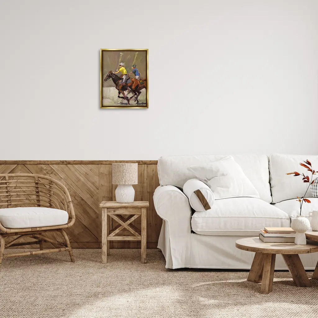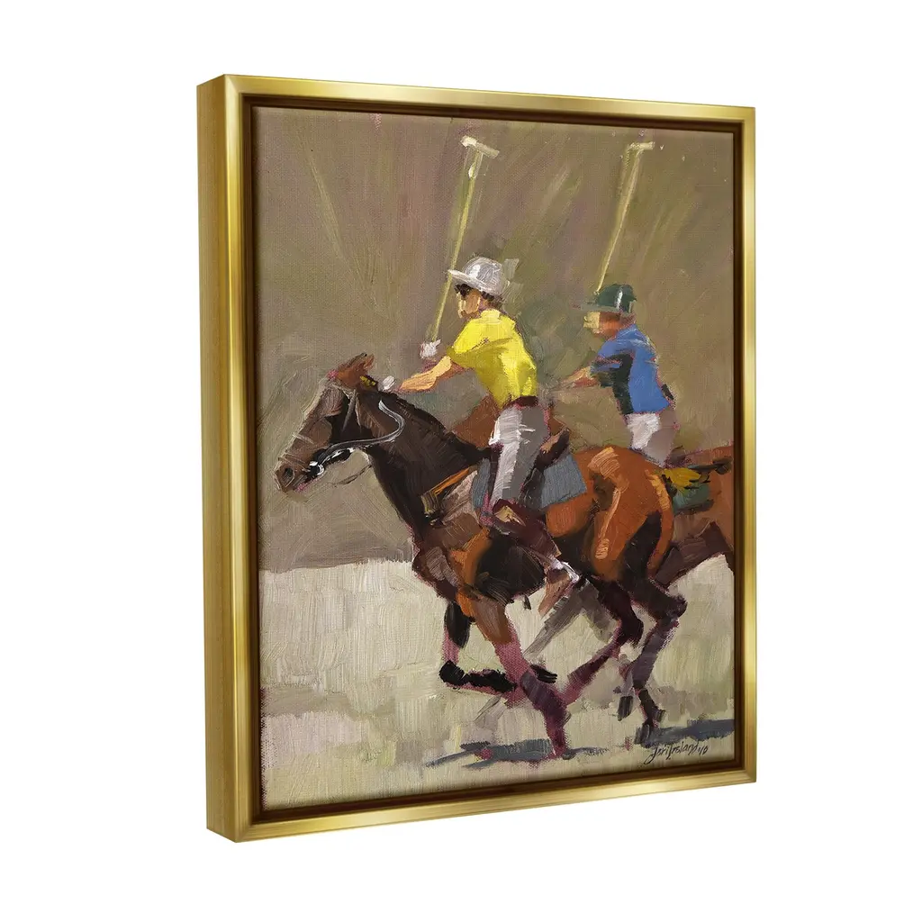 Stupell Galloping Polo Players Framed Floater Canvas Wall Art Design By Jeri Ireland - 17 X 21 - Gold