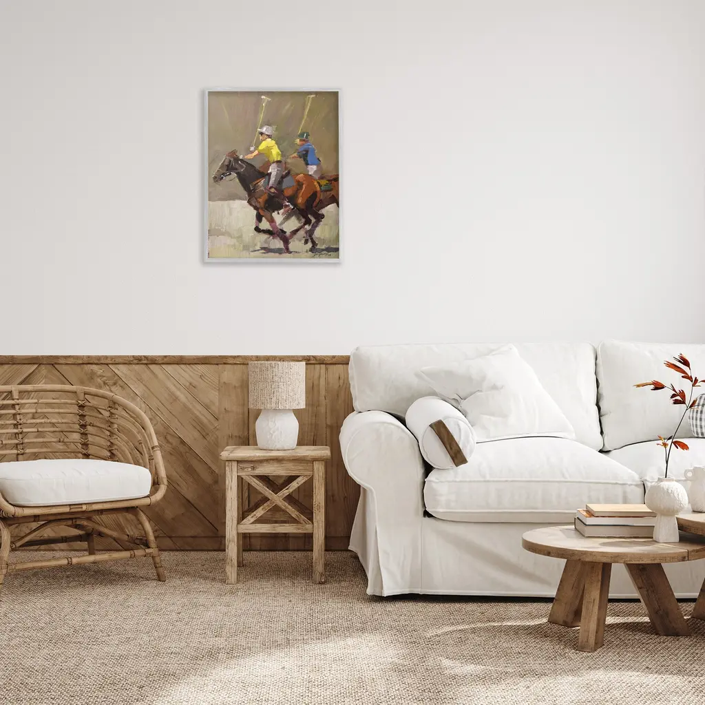 Add dimension to any room with our textured Framed Giclee Artwork. Our framed artwork is securely mounted into a 1.5-inch thick wood grain frame and ready to hang. Frames are available in three alluring styles: black, gray farmhouse and white. In addition, you should check out our oversized options if you want a statement piece. Stupell Wall Art is made in the USA.Features: Dimensions: 11 x 1.5 x 14 FramedFramed Giclee Products are available in the sizes 11"x14", 16"x20" or 24"x30". All Framed Giclee Products have a 1.5" Depth. Wall Art is Ready to Hang with Hardware Free Hanging. No installation required. For Easy Set Up Lean or Layer Artwork on Shelf or Against Wall.Our giclée prints are carefully mounted on a durable MDF backing, and then perfectly finished in a 1.5 inch thick woodgrain frame. Mounted frame colors include black, gray farmhouse and white. Made In USA.Artwork Relates To: Animal, Equestrian, Horse, Mammal, People, Person, Sport, Team, Team Sport, Polo, Helmet, Gallop, AbstractDesign by Jeri Ireland