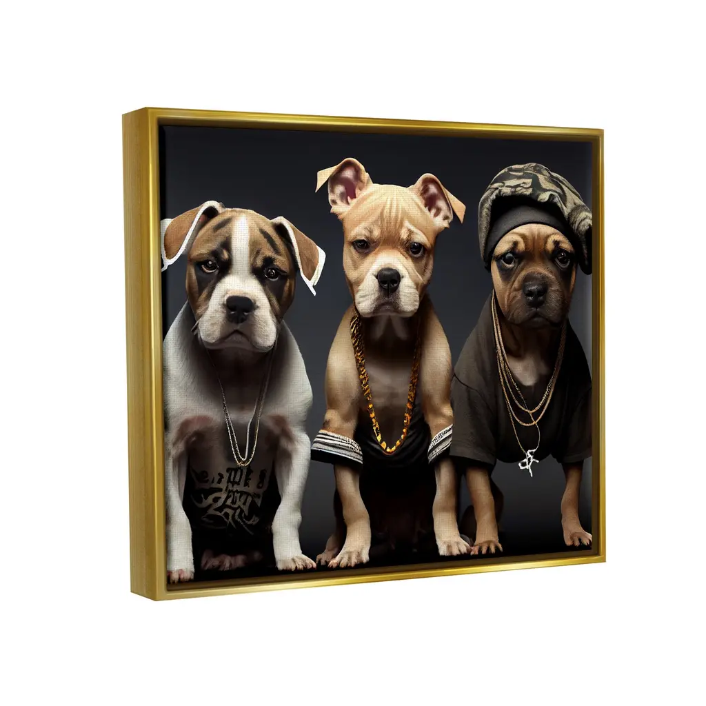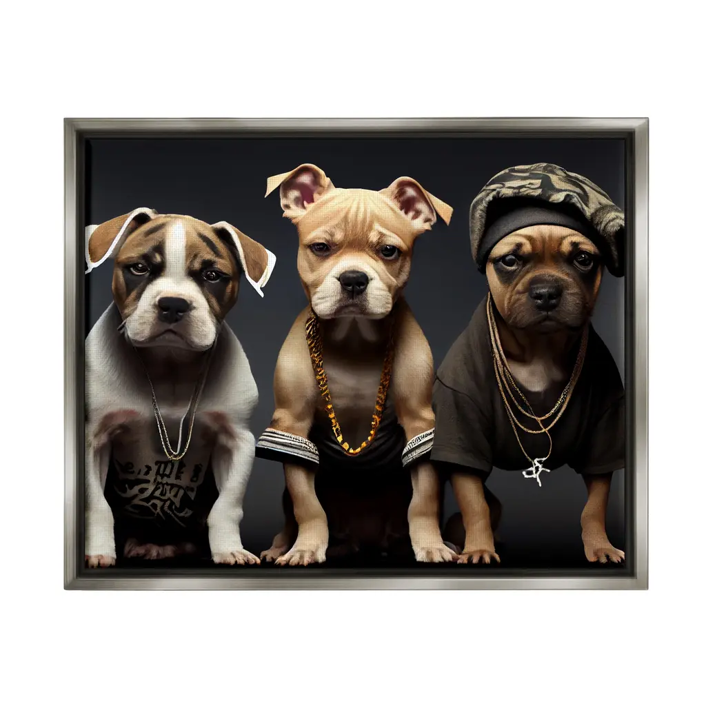 Stupell Gangster Dogs Trio Puppies Framed Floater Canvas Wall Art By Cybergeek Design - 20 X 16 - Grey