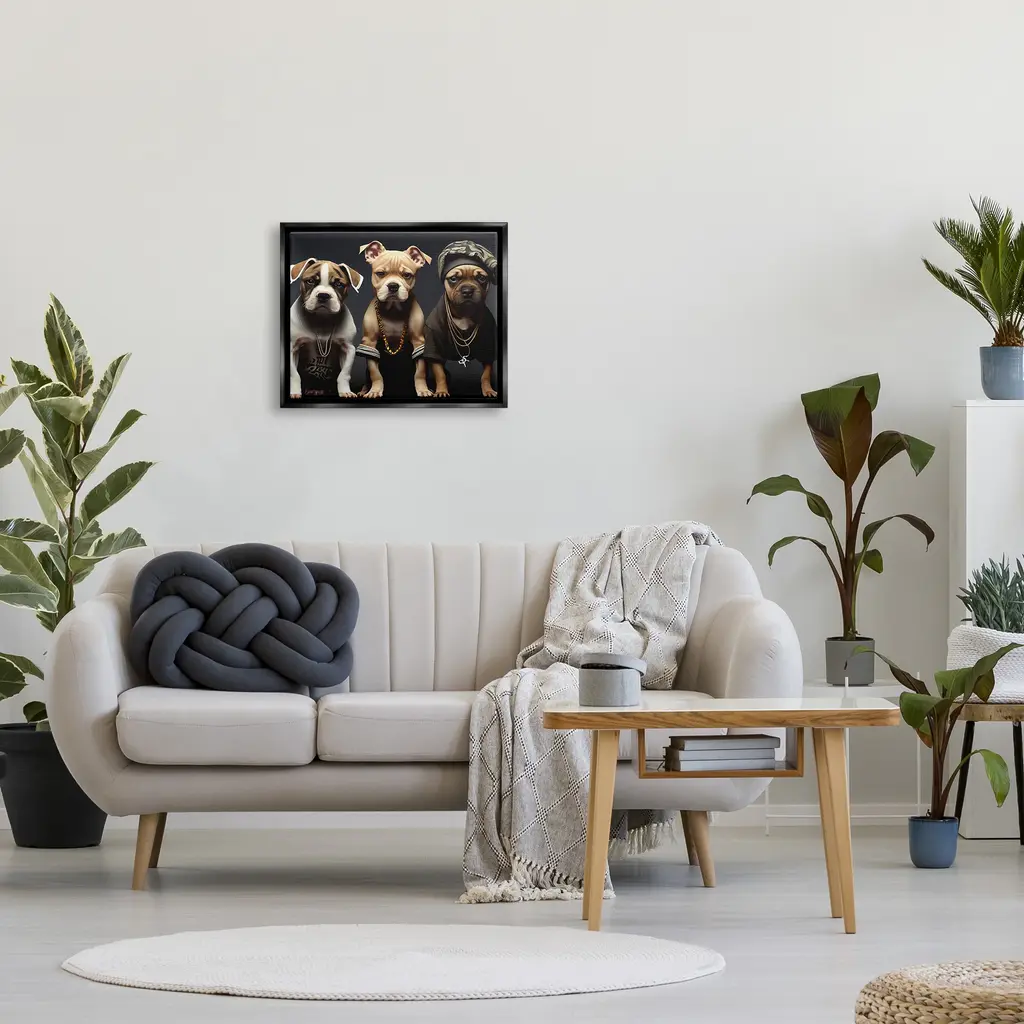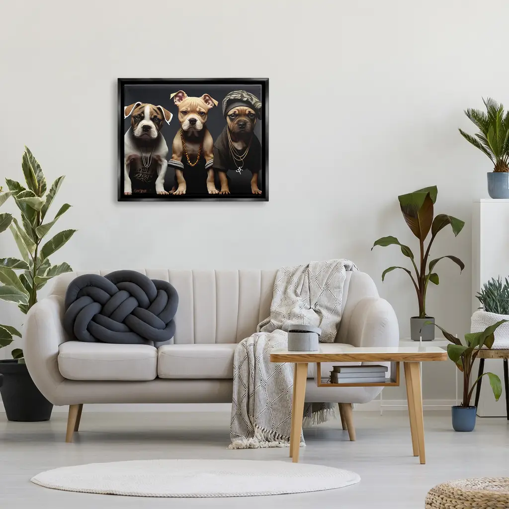 Stupell Gangster Dogs Trio Puppies Framed Floater Canvas Wall Art By Cybergeek Design - 30 X 24 - Gold