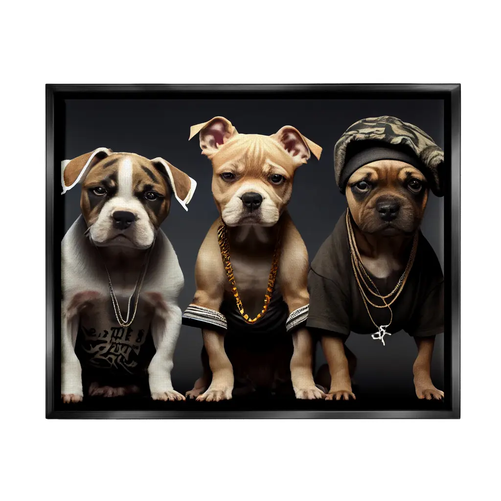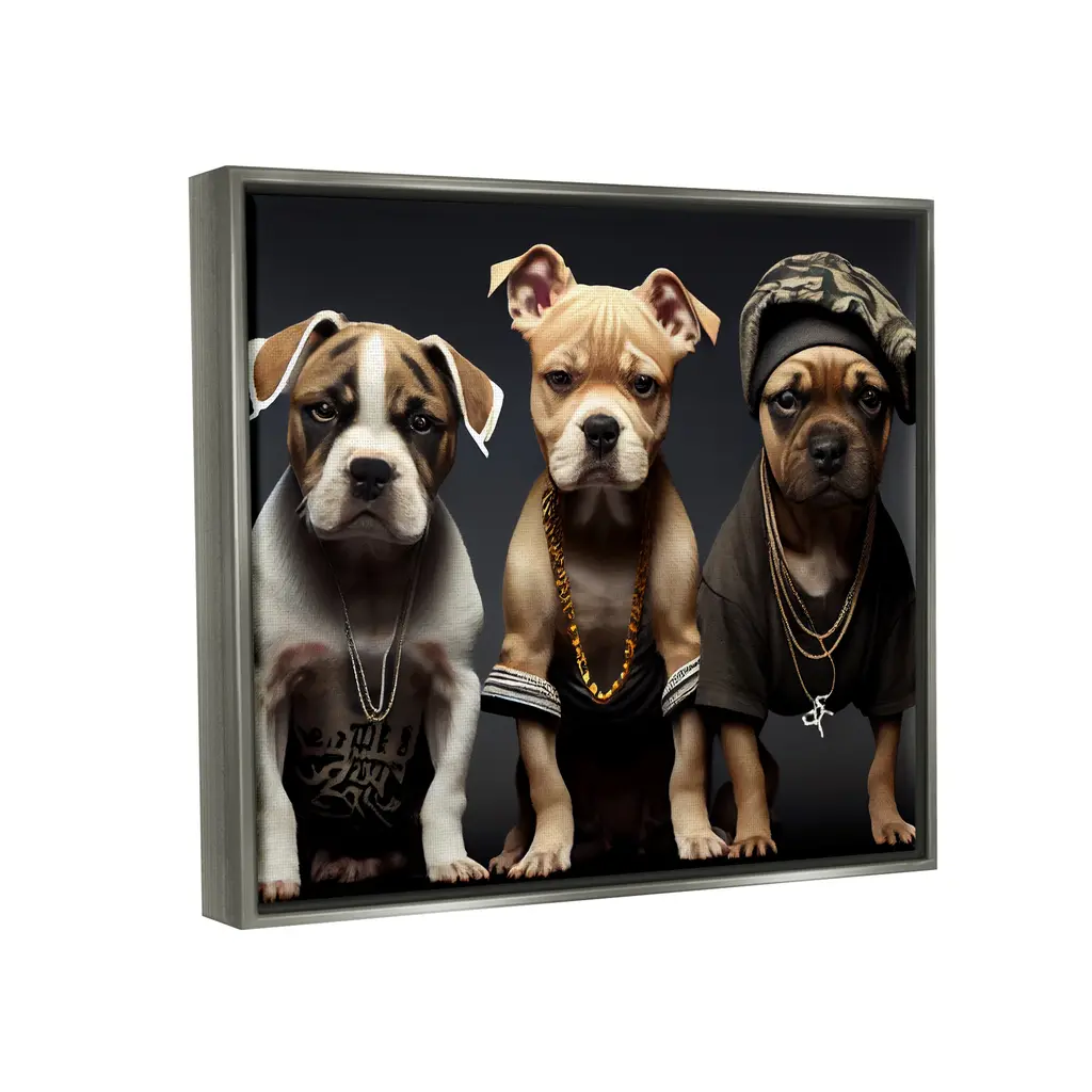 Stupell Gangster Dogs Trio Puppies Framed Floater Canvas Wall Art By Cybergeek Design - 30 X 24 - Grey
