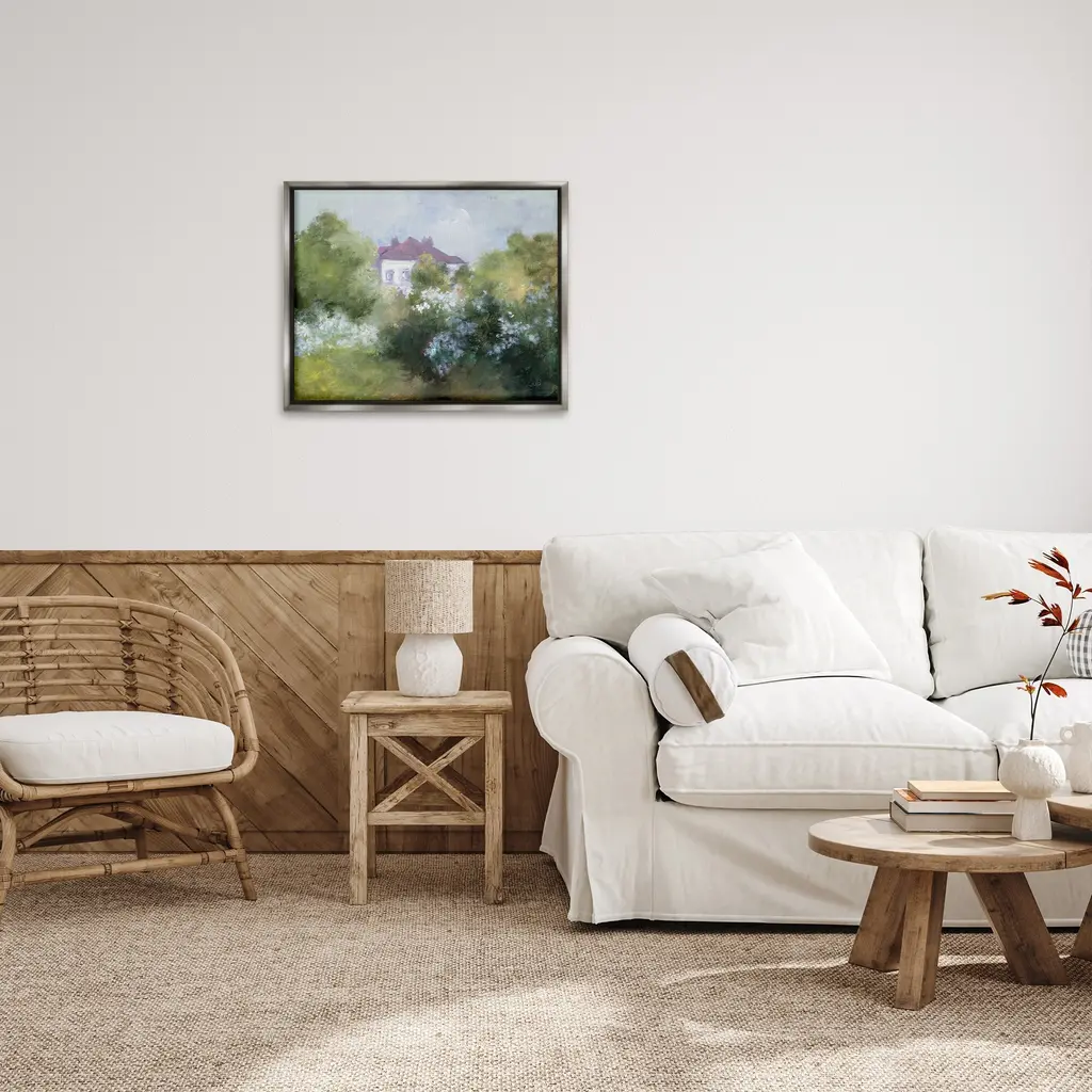 Elevate your home or office to the next level with Stupell Framed Floating Canvas Wall Art. Our premium hand-stretched canvas is mounted securely into a sturdy lightweight frame. The museum-style gap between the wrapped canvas and the box frame gives the illusion of floating artwork. Stupell Wall Art is made in the USA.Features: Dimensions: 21 x 1.7 x 17 Frame, 20 x 1.5 x 16 Canvas ArtFloating Frame Canvas Products are available in sizes 21"x17" and 31"x25". All Floating Frame Canvas Products have a 1.7" Depth.Wall Art is Ready to Hang with Hardware Free Hanging. No Installation required. For Easy Set Up Lean or Layer Artwork on Shelf or Against Wall. Artwork is Permently Fixed into the Frame.Our elevated 1.7" Thick Floating Frame is the perfect complement to our canvas style Wall Art. We use only the highest quality inks in house with industry leading printing solutions. Canvas is hand stretched over a durable wood foundation and then mounted securly into a Modern Box Frame. Made in the USA.Artwork Relates To: Architecture, Building, Cottage, House, Plant, Nature, Villa, Garden, Flower, Abstract, PaintingDesign by Julia Purinton