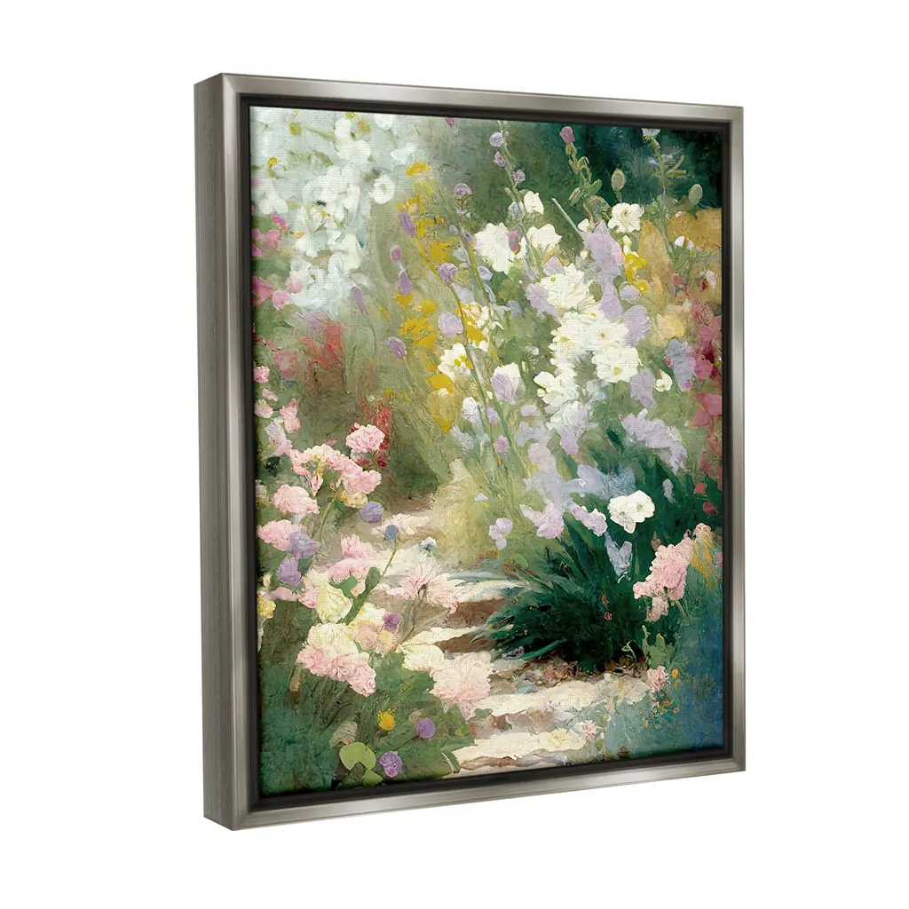 Elevate your home or office to the next level with Stupell Framed Floating Canvas Wall Art. Our premium hand-stretched canvas is mounted securely into a sturdy lightweight frame. The museum-style gap between the wrapped canvas and the box frame gives the illusion of floating artwork. Stupell Wall Art is made in the USA.Features: Dimensions: 17 x 1.7 x 21 Frame, 16 x 1.5 x 20 Canvas ArtFloating Frame Canvas Products are available in sizes 17"x21" and 25"x31". All Floating Frame Canvas Products have a 1.7" Depth.Wall Art is Ready to Hang with Hardware Free Hanging. No Installation required. For Easy Set Up Lean or Layer Artwork on Shelf or Against Wall. Artwork is Permently Fixed into the Frame.Our elevated 1.7" Thick Floating Frame is the perfect complement to our canvas style Wall Art. We use only the highest quality inks in house with industry leading printing solutions. Canvas is hand stretched over a durable wood foundation and then mounted securly into a Modern Box Frame. Made in the USA.Artwork Relates To: Nature, Flower, Plant, Floral, Botanical, Traditional, Country, Cottage, Path, LandscapeDesign by Gina Kelly