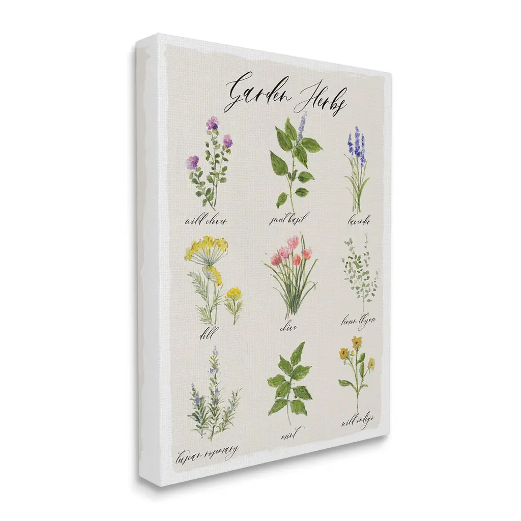Stupell Garden Herb Illustrated Chart Natural Kitchen Seasoning Canvas Wall Art - Multi-Color - 24 X 30