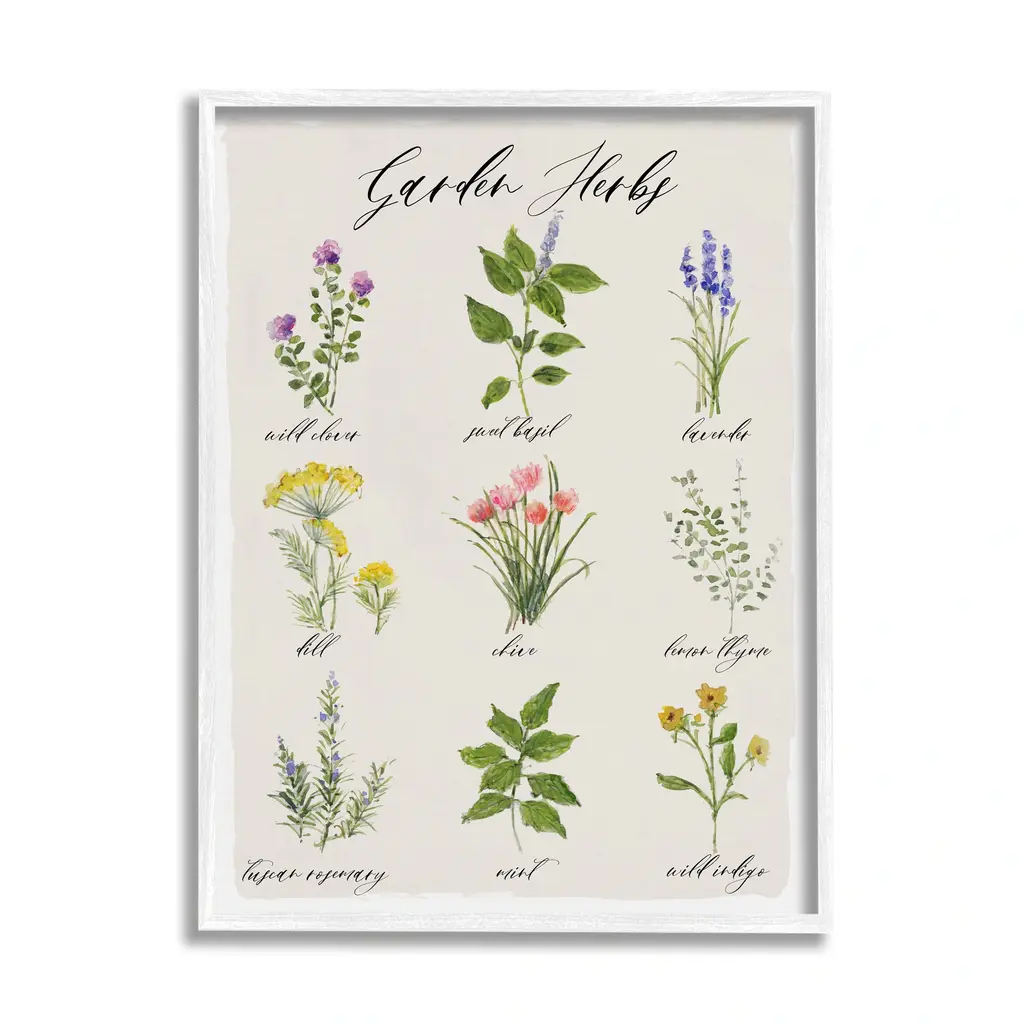 Stupell Garden Herb Illustrated Chart Natural Kitchen Seasoning Framed Wall Art - White - 16 X 20 - Black